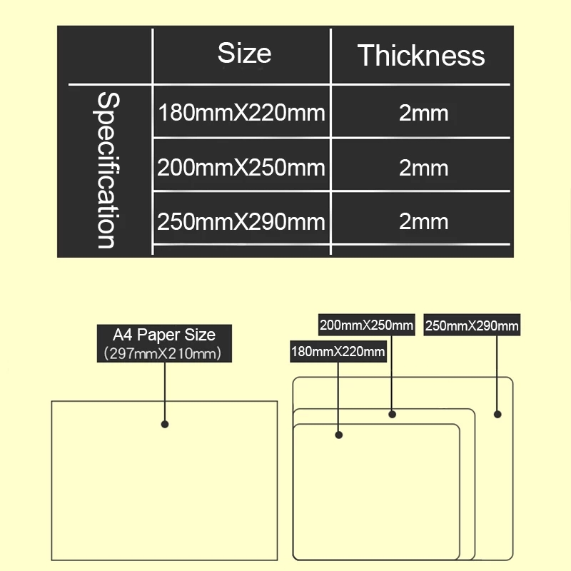 Примечание: фактический размер коврика для мыши зависит от названия цвета.