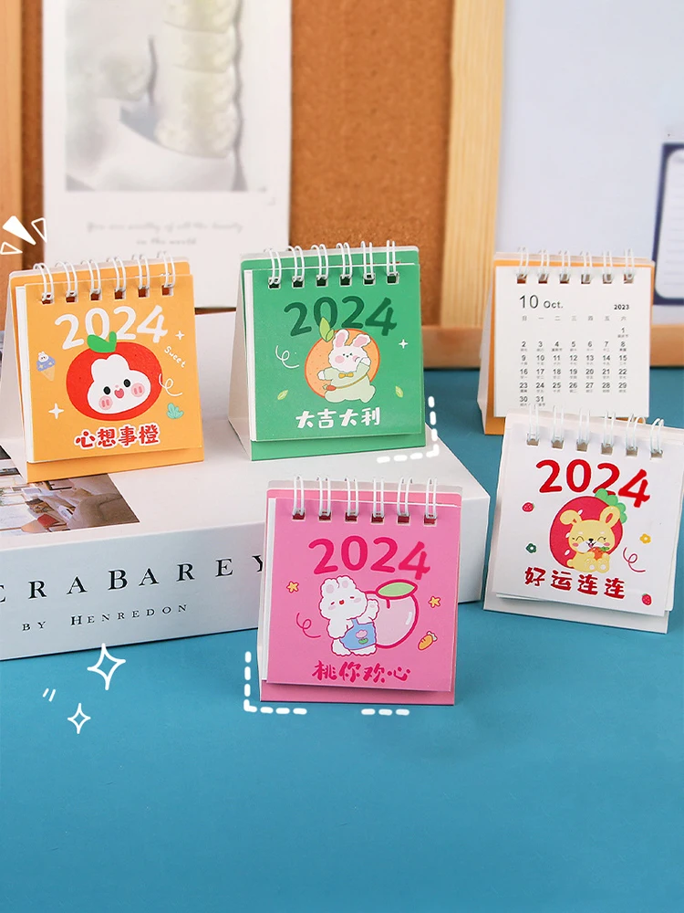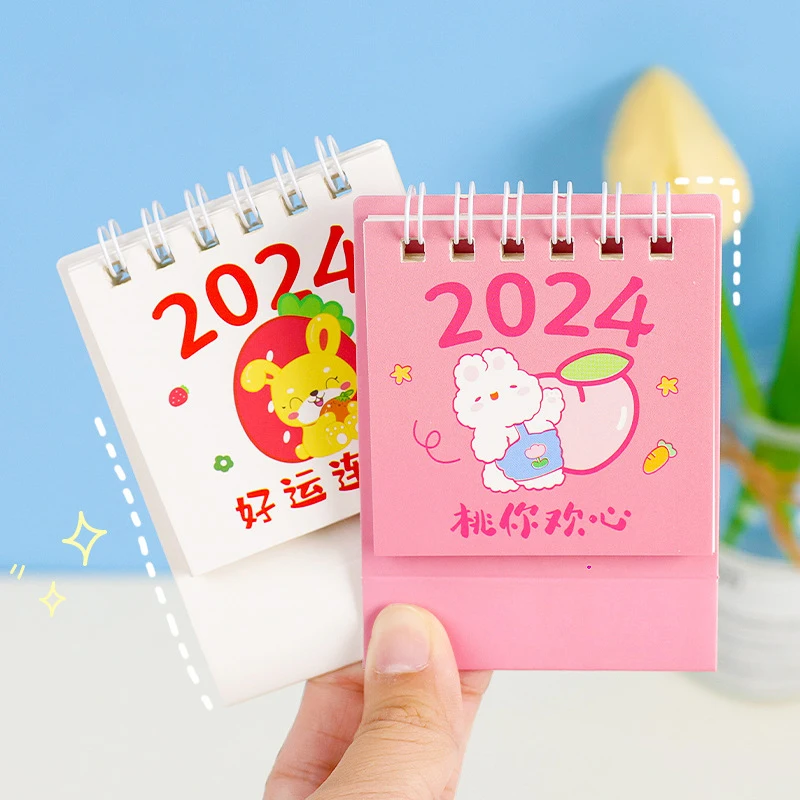 Настольный мини-календарь с милым мультяшным розовым котом, настольный календарь с откидной крышкой, маленький ежедневный план, ежемесячный календарь для дома, 2024