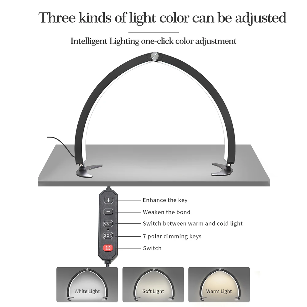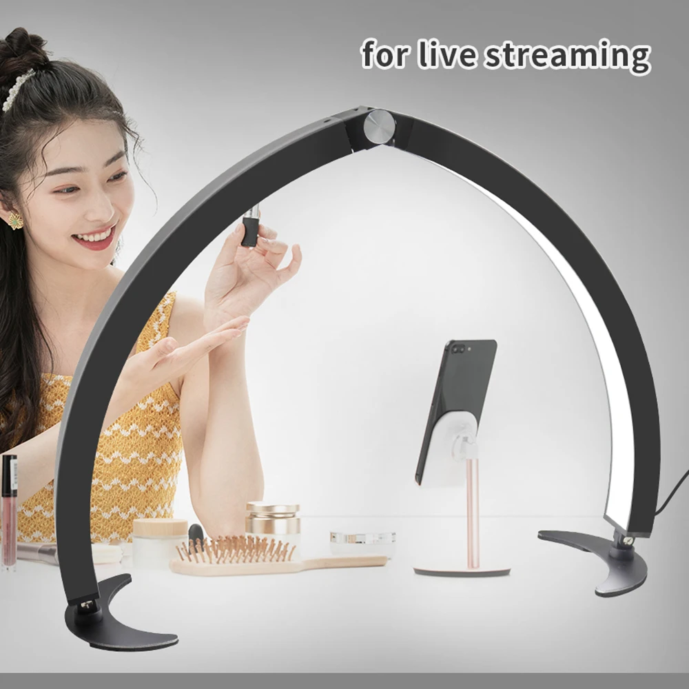 【Широкое применение】 Настольный светодиодный заполняющий светильник в форме полумесяца подходит для настольного видеоблога, прямых трансляций в салонах красоты, косметических проектов и т. Д.