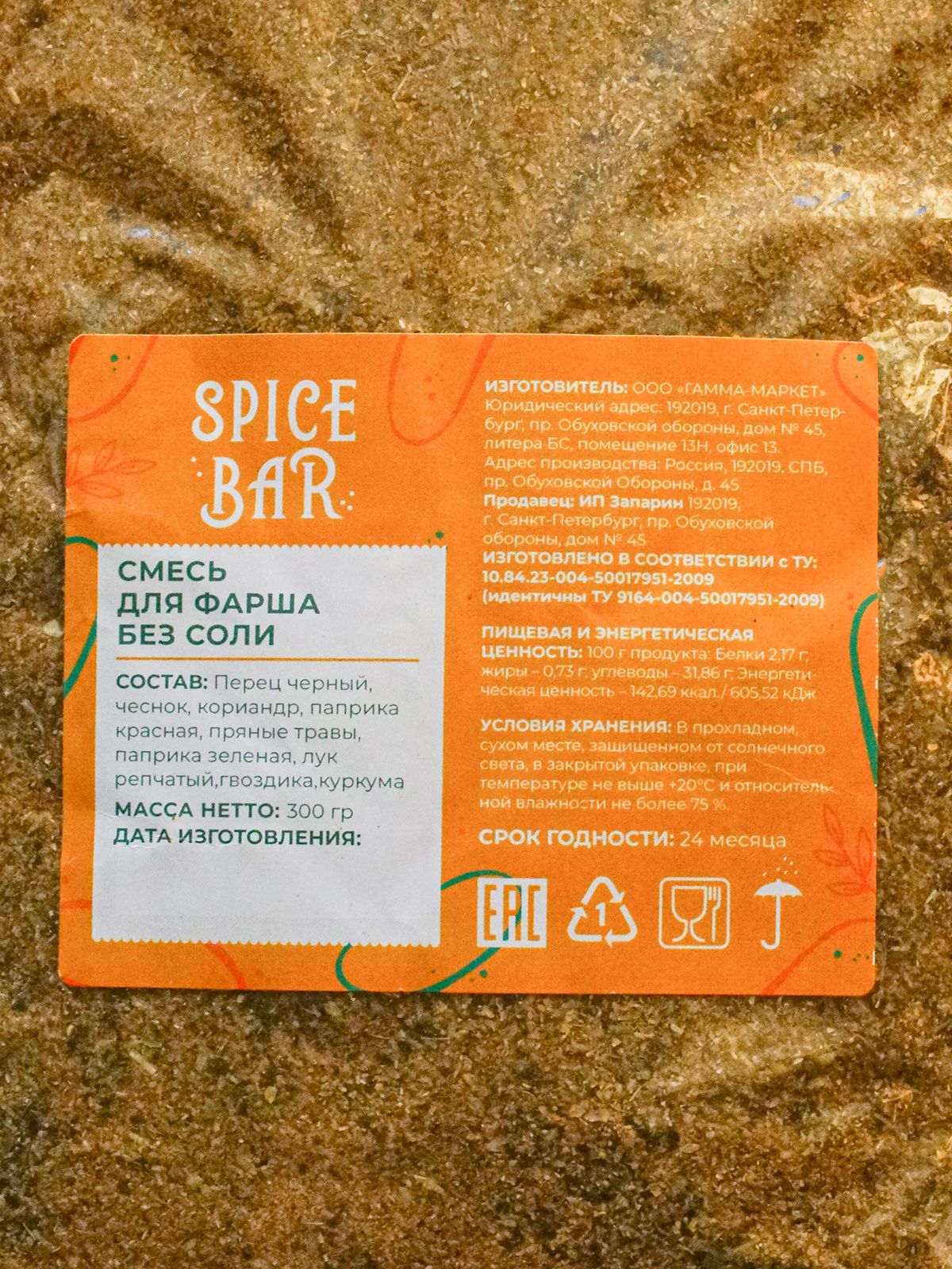 Натуральная приправа для фарша и котлет без соли 300г, специи