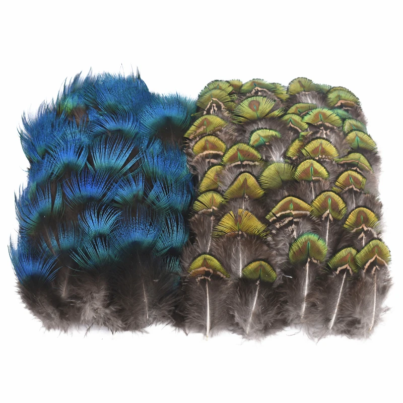 Натуральные Золотые синие перья павлина для творчества, Создание украшений, аксессуары для рукоделия, серьги, перья, материал для вязания мушек