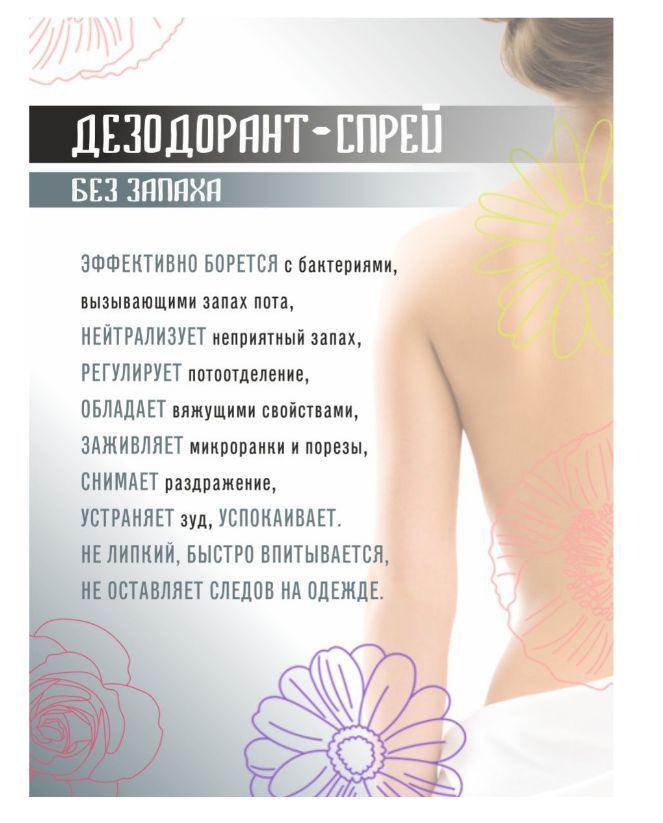 •Эффективно борется с запахом пота, не оставляет жёлтых или белых следов на одежде