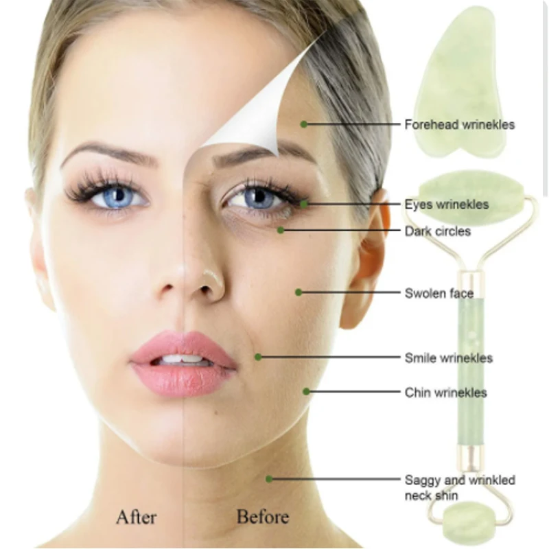 Натуральный нефритовый ролик для лица Гуаша набор для ухода за кожей массажер для шеи и глаз релаксатор мышц снятие морщин инструменты для красоты лица