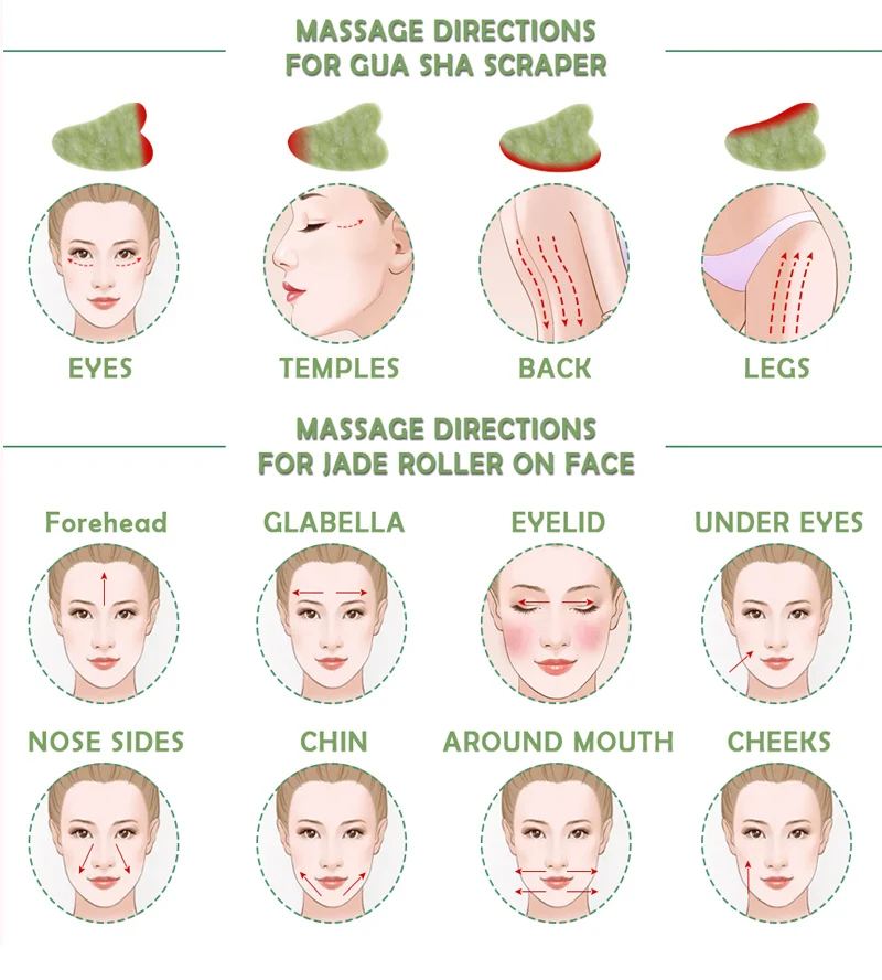 3. Гуа Ша: не только приподнимает кожу и улучшает тонкие линии под давлением вверх, но также помогает придать форму линии челюсти.