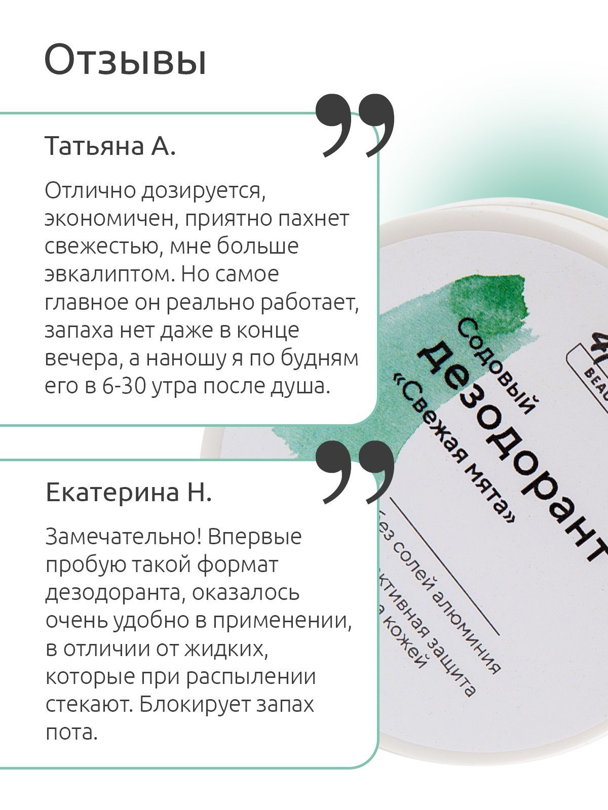 Содовый дезодорант имеет безопасный состав. Идеально для людей с чувствительной кожей, беременных женщин и кормящих мам. Дезодорант женский подходит и для мужчин.