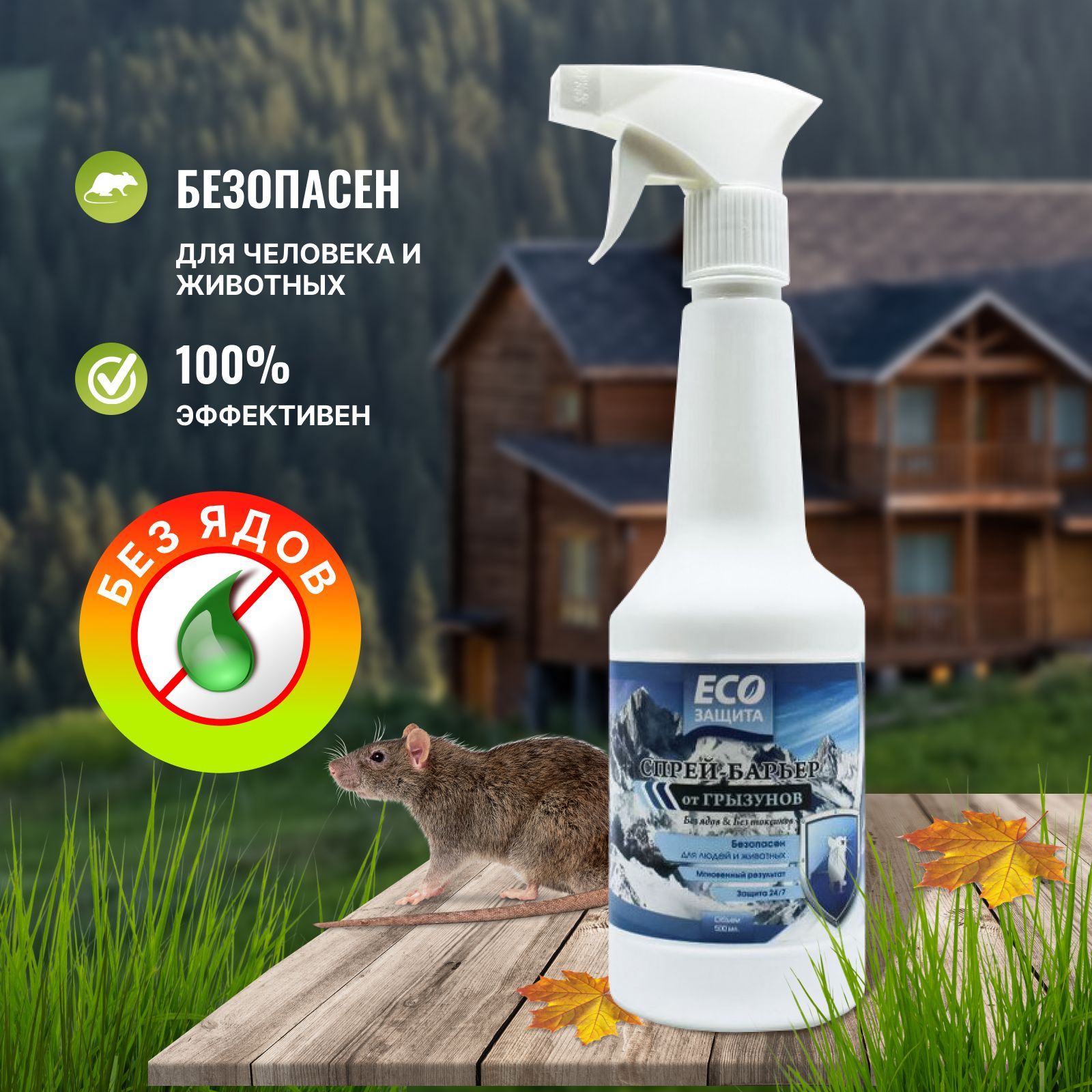 Описание: Спрей от грызунов Натуральный отпугивающий спрей, безопасный для человека и животных. Без ядов и пестицидов!