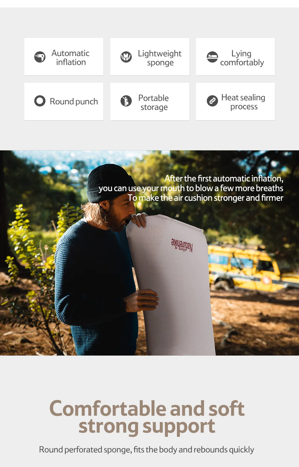 Naturehike самонадувающийся коврик 2 человека матрас открытый кемпинг кровать надувной коврик расширенный природный поход губка автоматический надувной спальный коврик для палатки