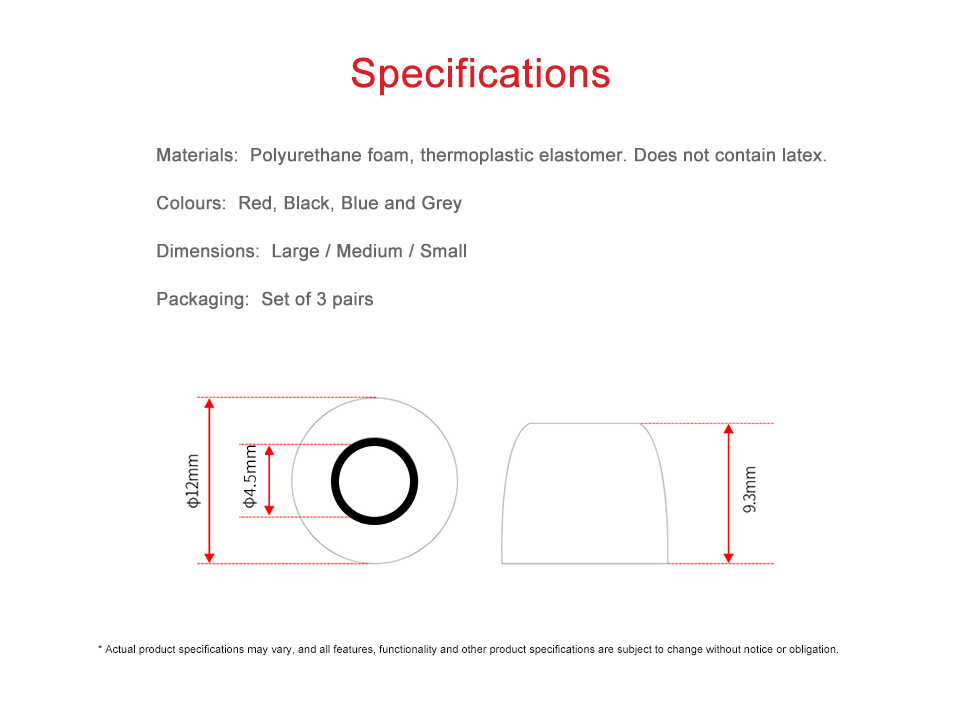 Наушники-вкладыши с эффектом памяти, S/M/L, 4,5 мм, 3 пары