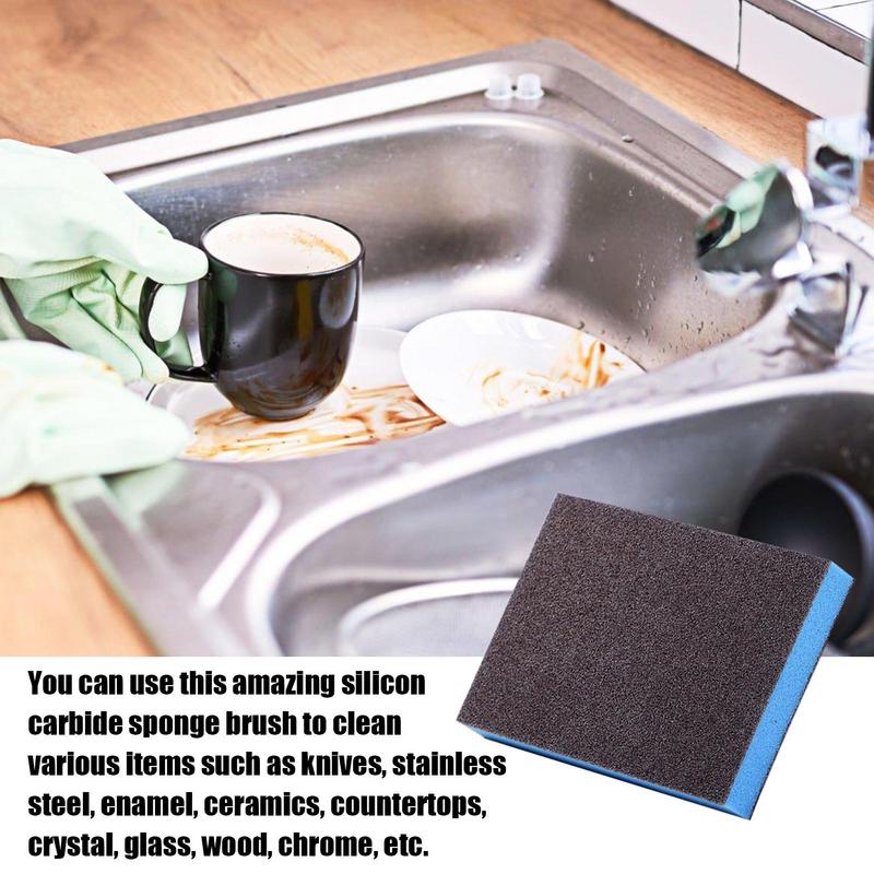 • Легко использовать:Просто намочите губку и добавьте моющее средство, затем сначала намочите сковороду и легко потрите. Губка Magic Carborundum проста в использовании и имеет две стороны, которые можно использовать.