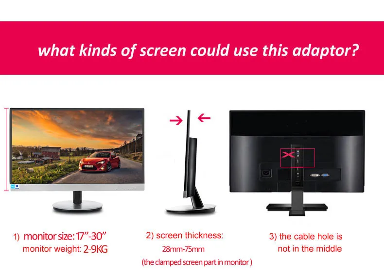 • Для экрана без отверстий VESA (если у вашего экрана есть отверстие VESA, пожалуйста, выберите наш F80, спасибо)