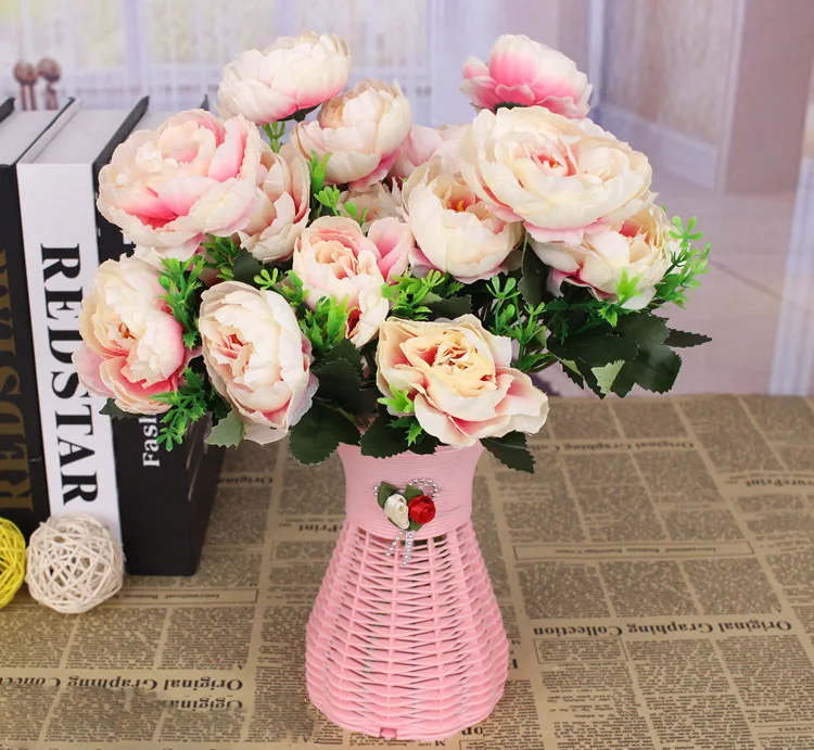 Недорогой букет из 6 цветов, имитация пиона филигранные розы, пионы, ретро-букет невесты, искусственные цветы для дома, Рождества, свадьбы