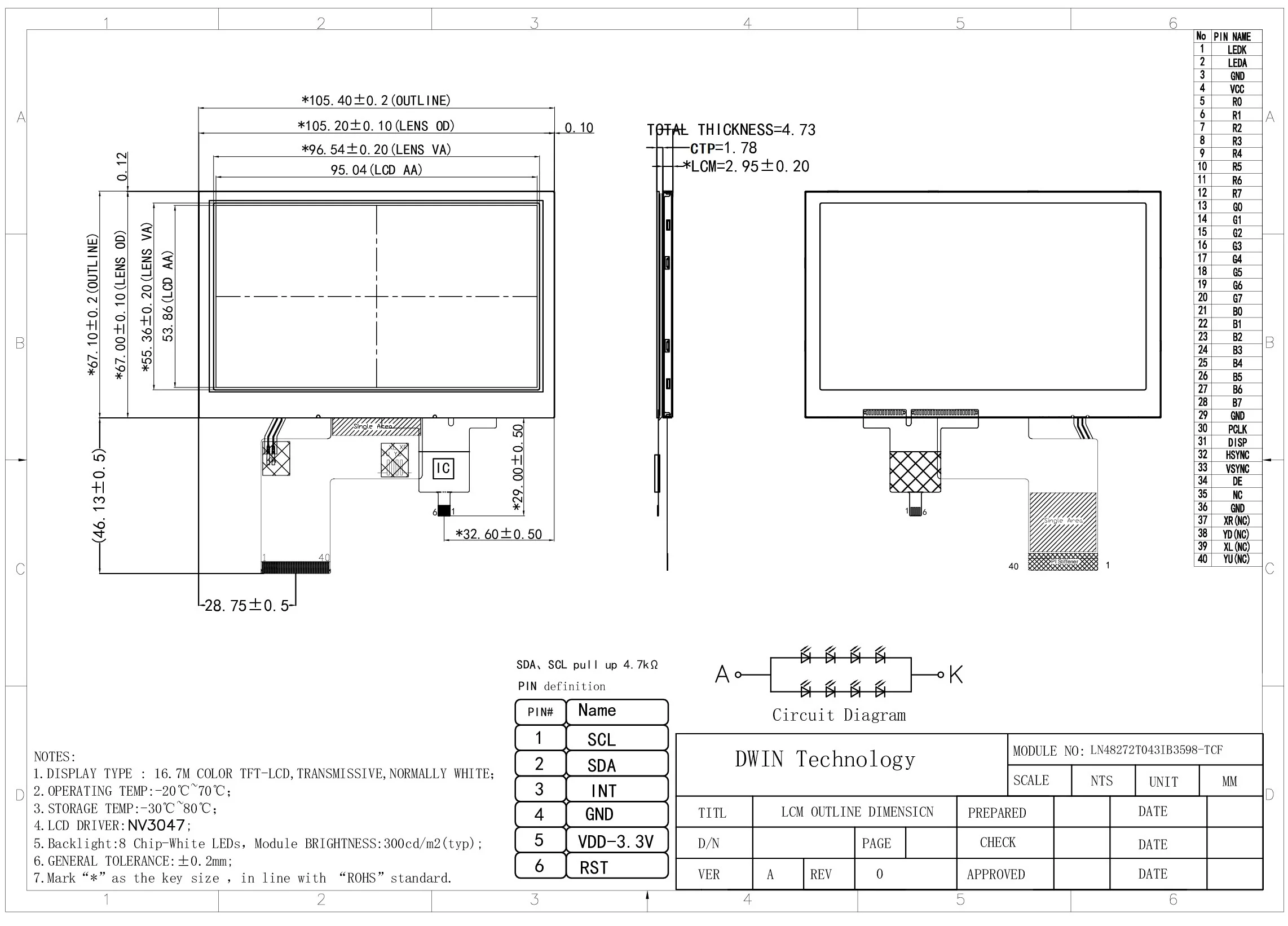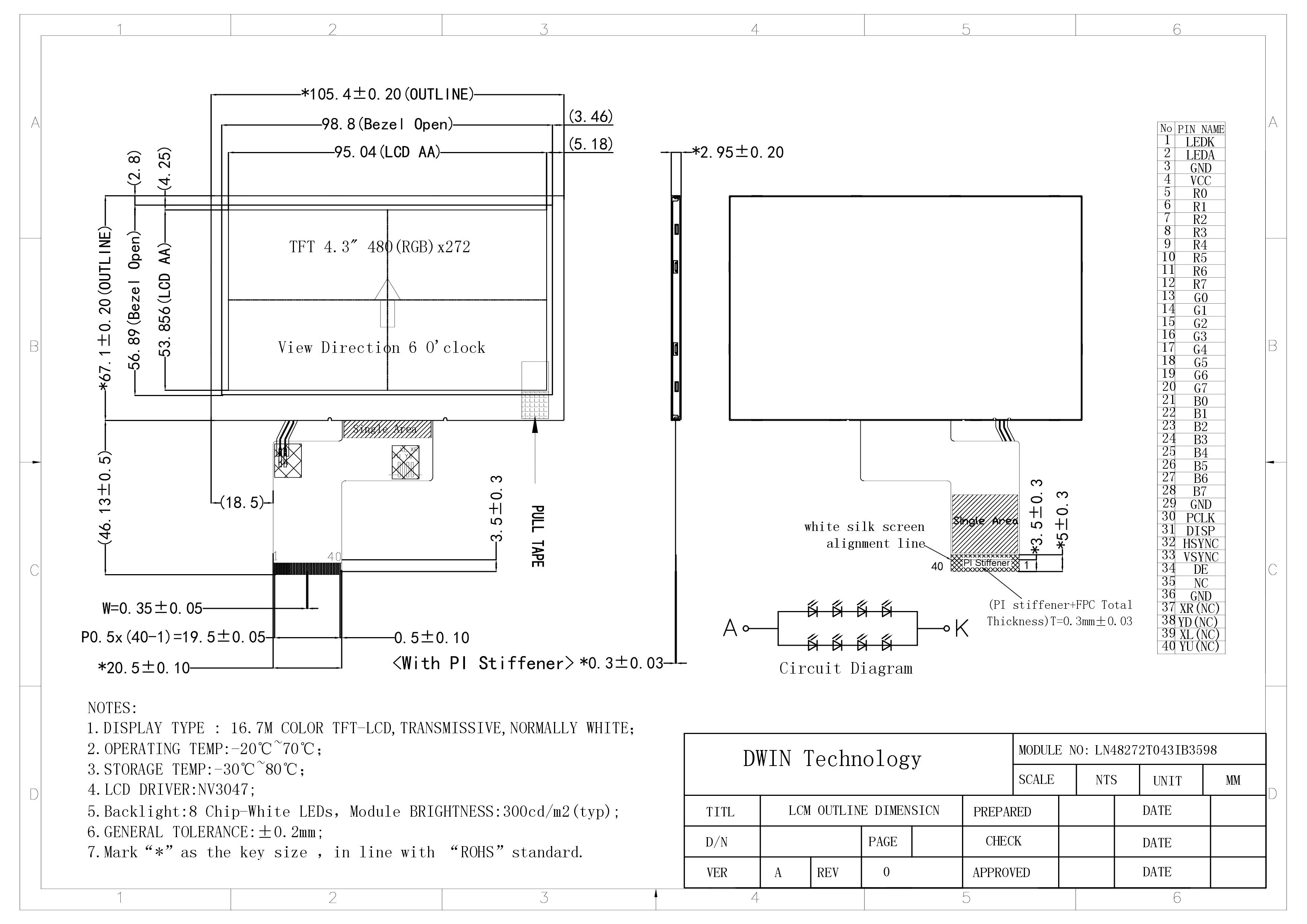 Недорогой цветной ЖК-экран DWIN 4,3 дюйма 480xRGBx272 40PIN TN TFT 100% протестирован