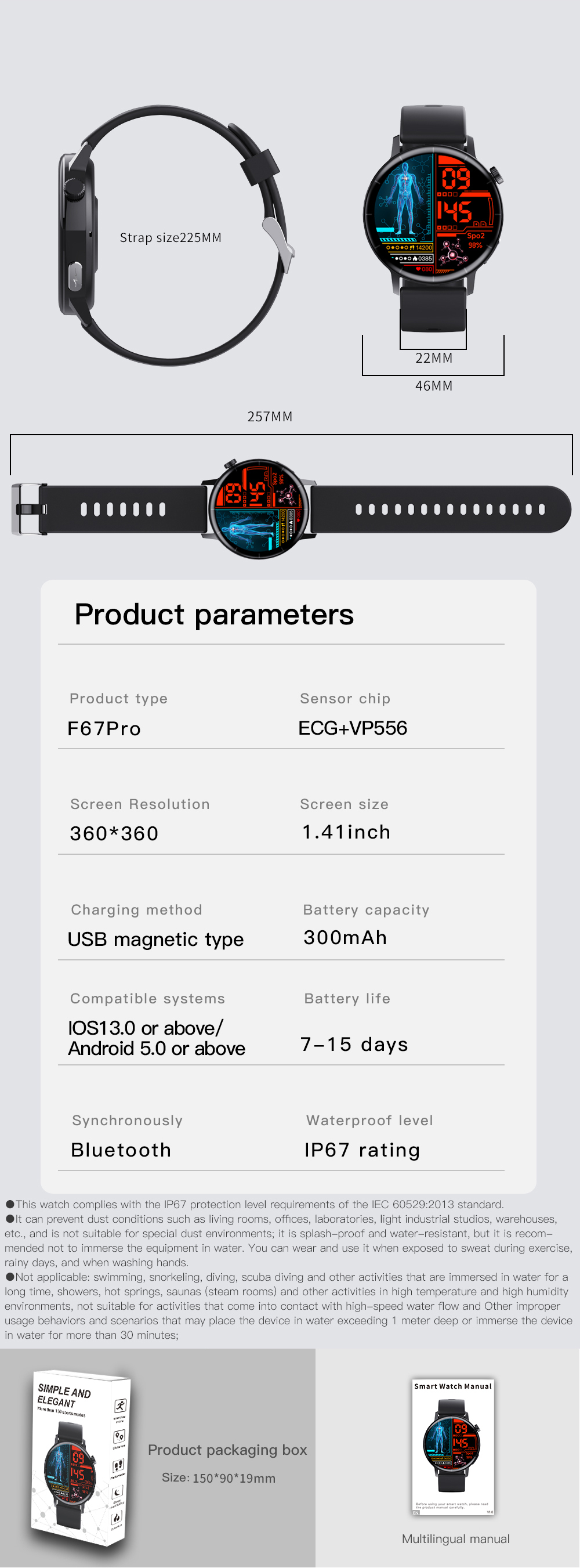 Неинвазивные умные часы F67PRO с измерением уровня сахара в крови без иглы, Bluetooth, ЭКГ, мониторинг температуры тела, спортивные умные часы для здоровья