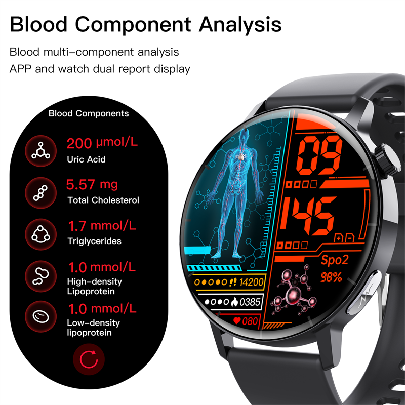 «Особенности блокбастера: измерение ЭКГ, анализ состава тела, анализ состава крови (Мочевая Кислота, Липиды), красный свет 24-часовой кислород крови, отчет о ВСР, 24-часовой научный сон, уровень сахара в крови четвертого поколения, мониторинг стресса в течение всего дня