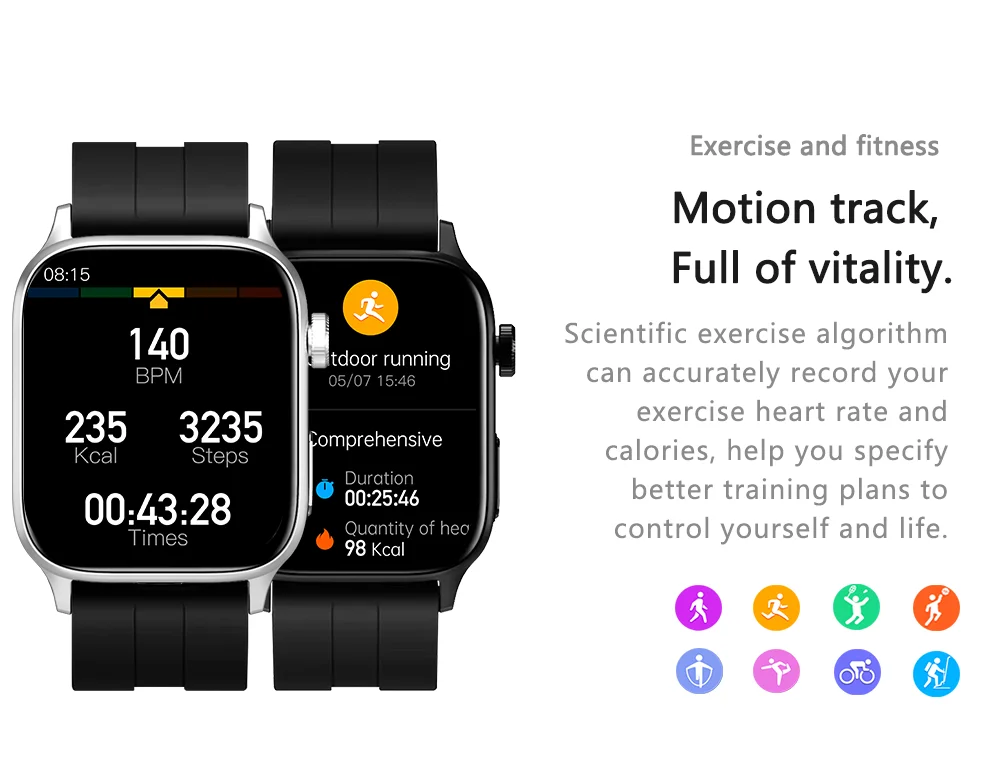 Мультиспортивный режим: Поддержка ходьбы, бега, езды на велосипеде, альпинизма, бадминтона, баскетбола, настольного тенниса, скакалки, йоги и т. Д.