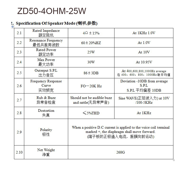 Номинальная мощность: 4 Ом 25 Вт