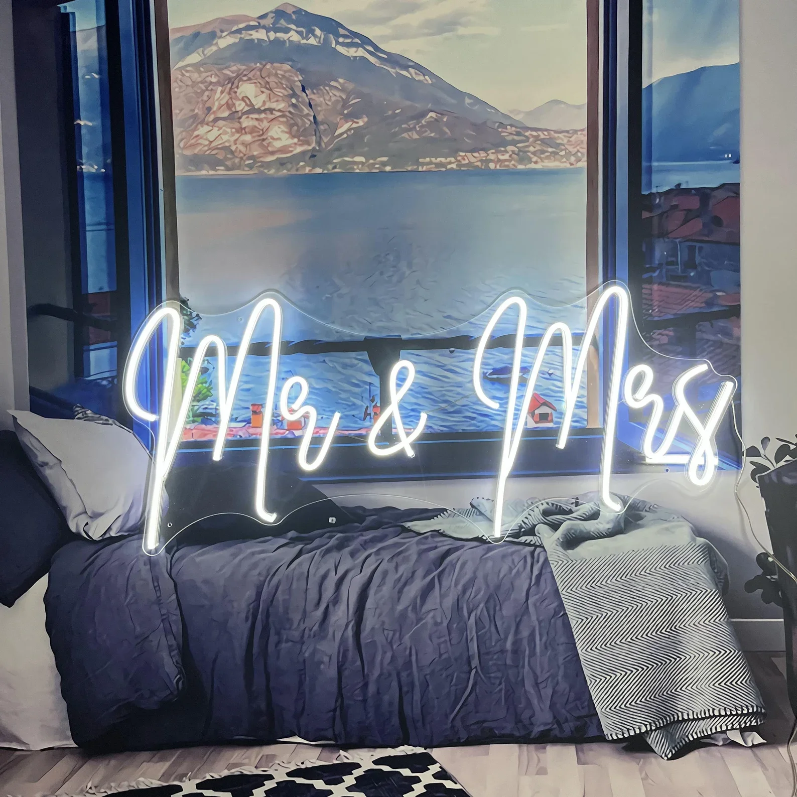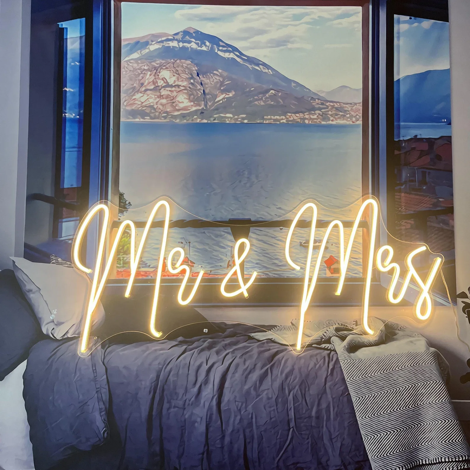 Неоновая вывеска Mr & Mrs, свадебная неоновая вывеска на заказ с сенсорным диммером, свадебная вывеска приветствия, неоновая вывеска на заказ разных размеров и Co