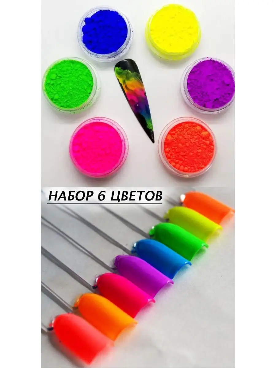 Комплектация Набор неонового пигмента для ногтей и маникюра макияжа 6 шт