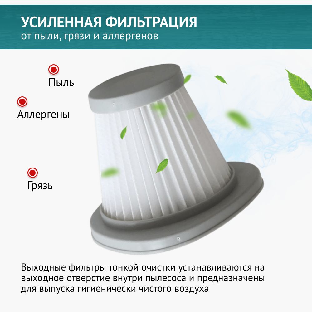 Выходные фильтры тонкой очистки устанавливаются на выходное отверстие внутри пылесоса и предназначены для выпуска гигиенически чистого воздуха. В качестве такого фильтра в вертикальном пылесосе Xiaomi Deerma DX118, DX118C, DX128, DX128C использован фильтр высокоэффективной очистки HEPA.⠀