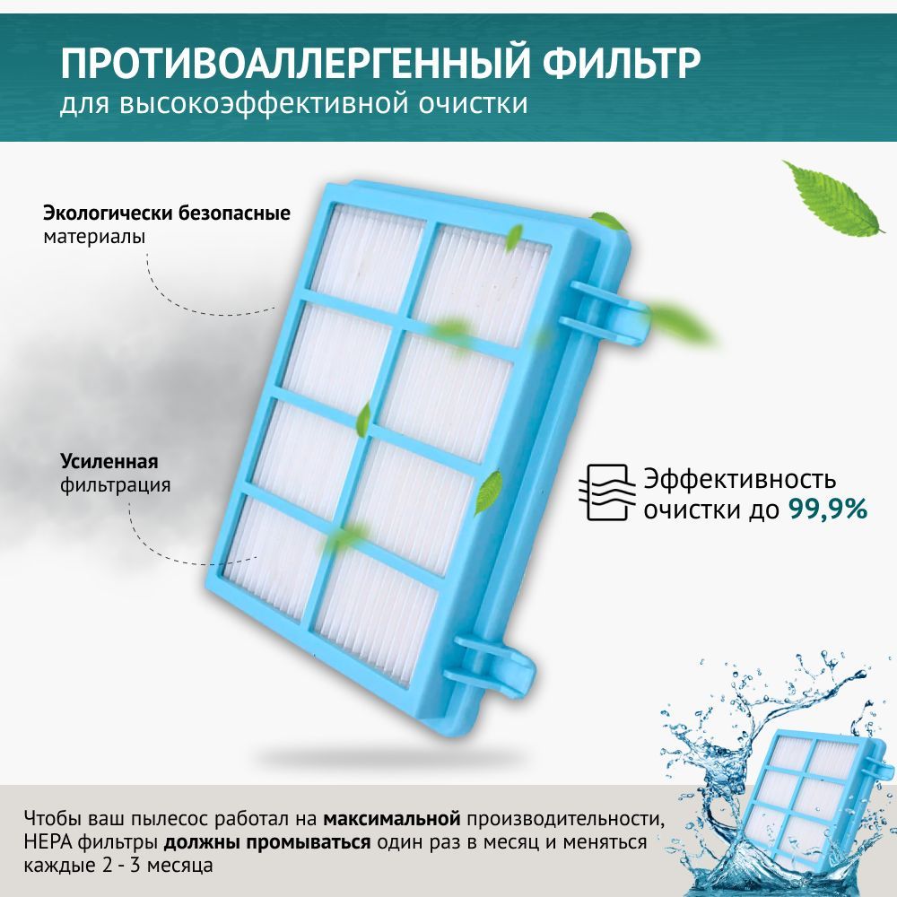 Описание: HEPA фильтр препятствует выходу мельчайших частиц пыли и аллергенов из пылесоса в помещение.