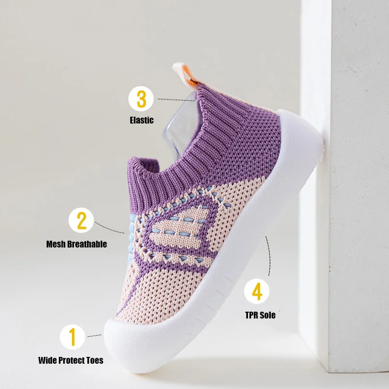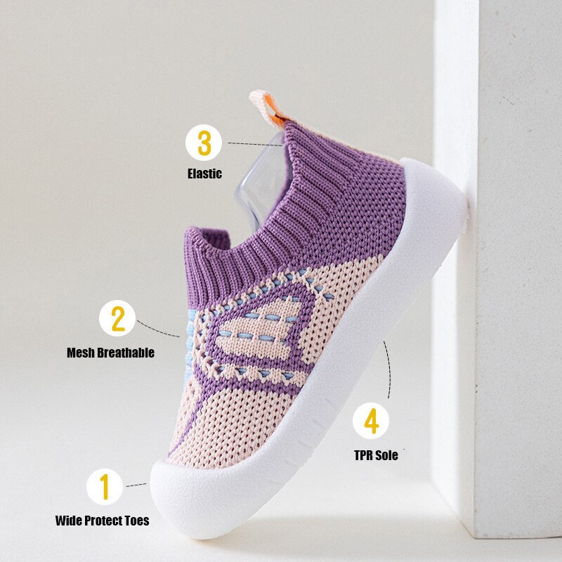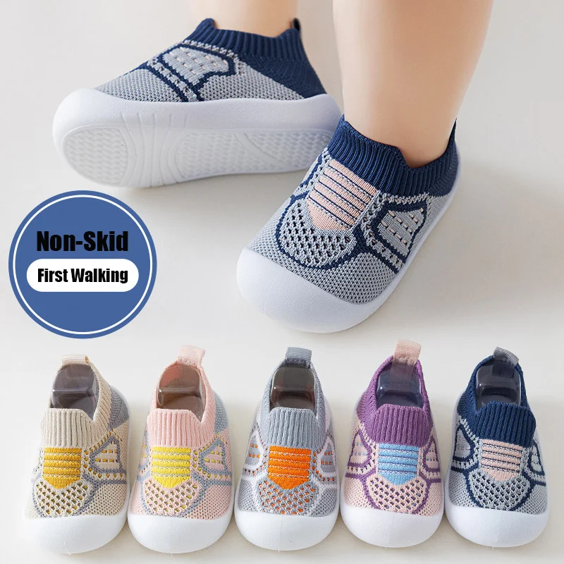 Нескользящие Детские Туфли-носки с мягкой подошвой, дышащие сетчатые детские летние кроссовки для пола, эластичные домашние пинетки для маленьких девочек