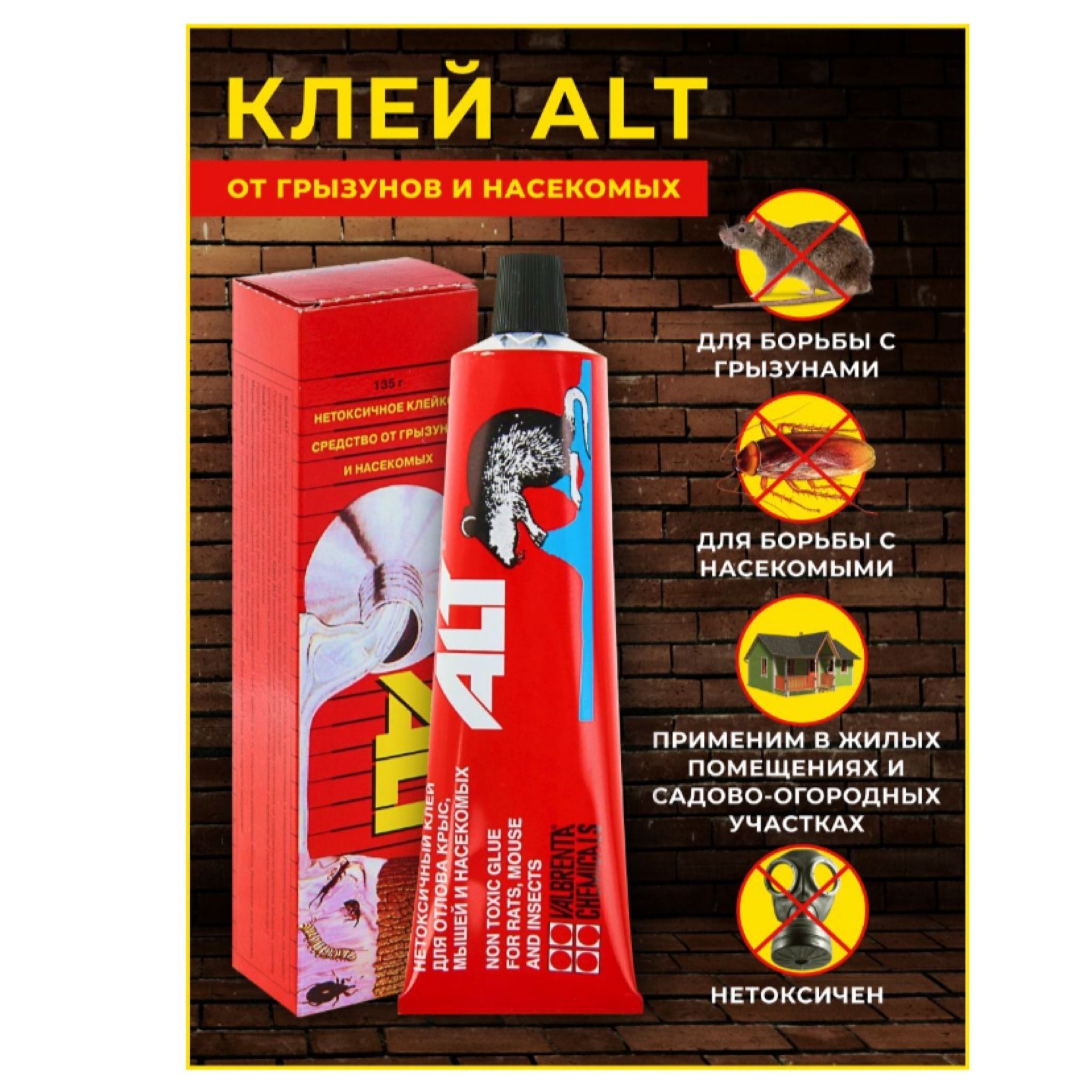 Нетоксичный клей "ALT" от грызунов и насекомых, туба 135гр