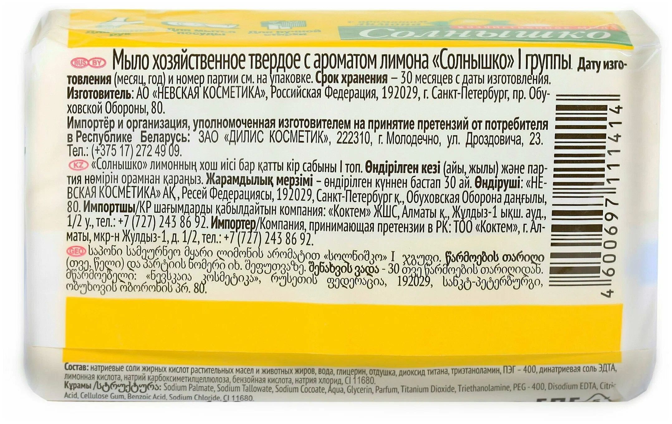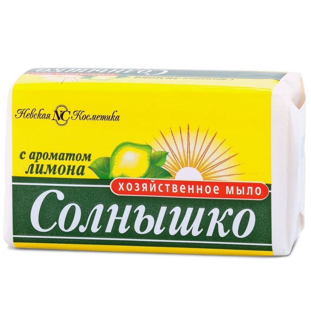 Описание: ЗаголовокНевская косметика Мыло хозяйственное Солнышко с ароматом лимон,140 г, 8 шт .