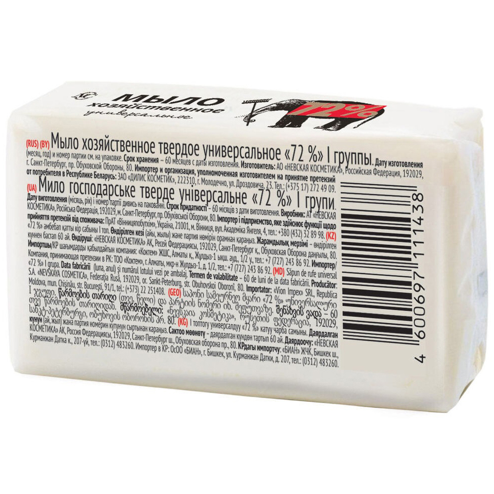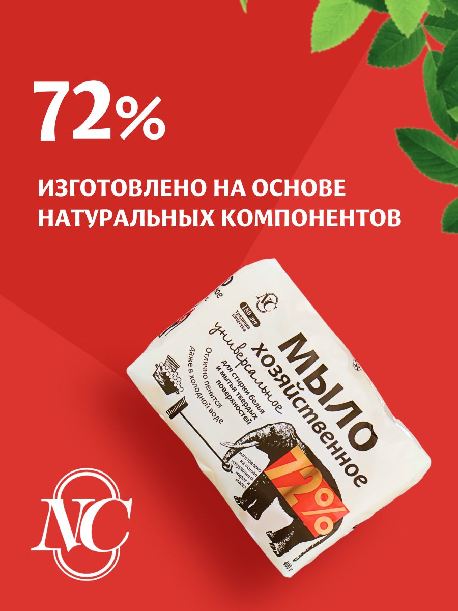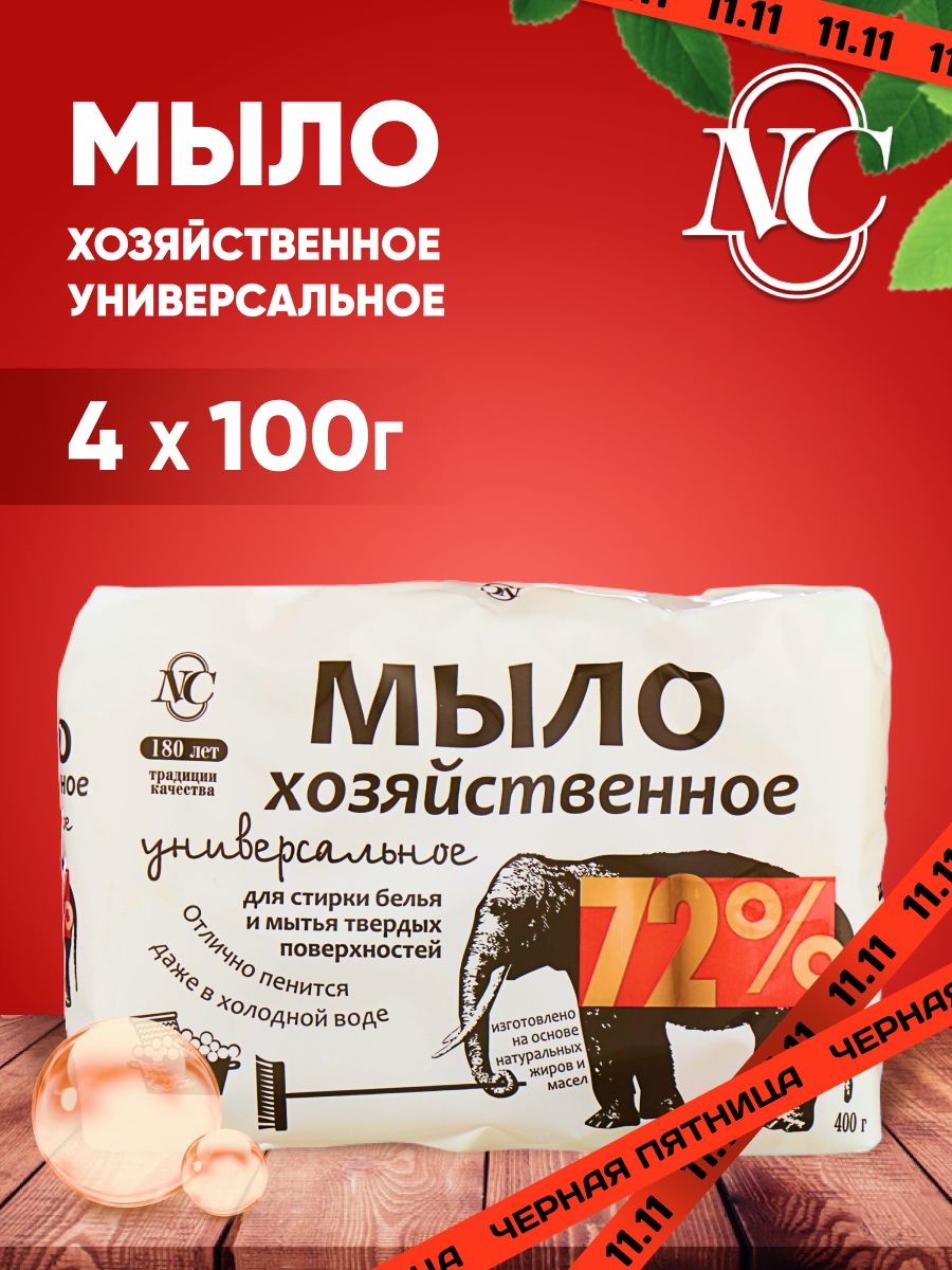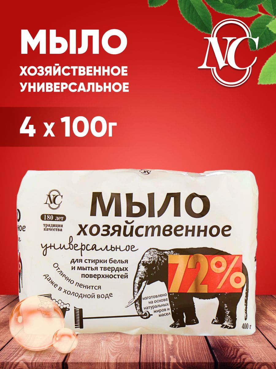 Невская Косметика Мыло Хозяйственное твердое 72%, универсальное, для стирки белья и мытья твердых поверхностей, 4 шт. по 100 г
