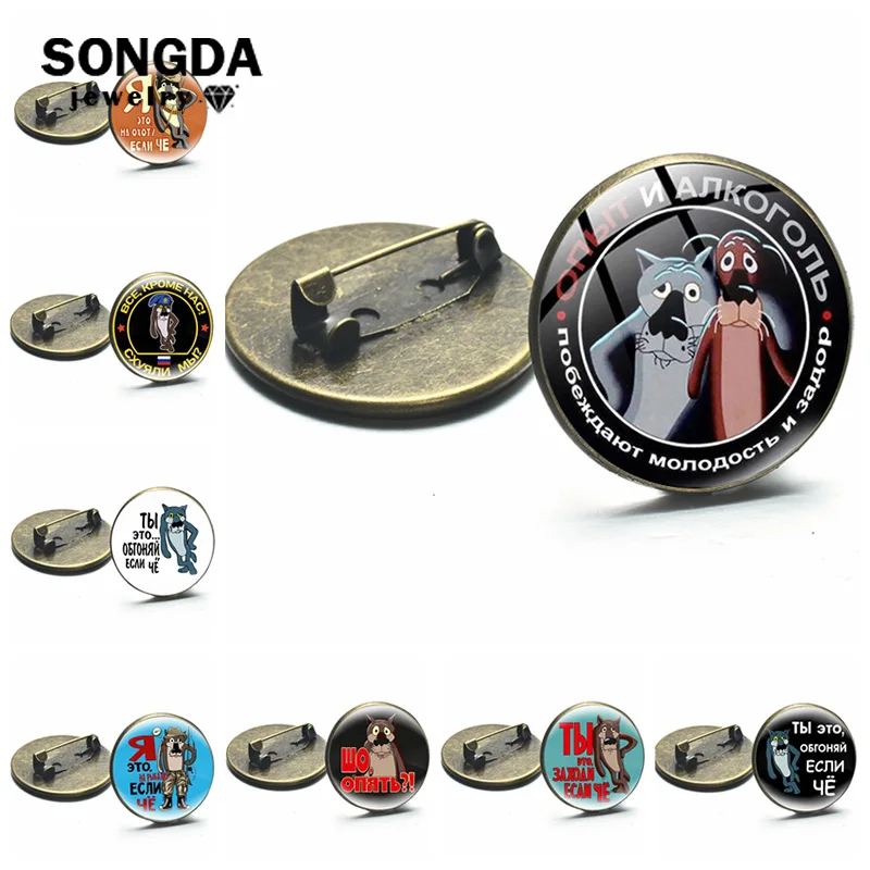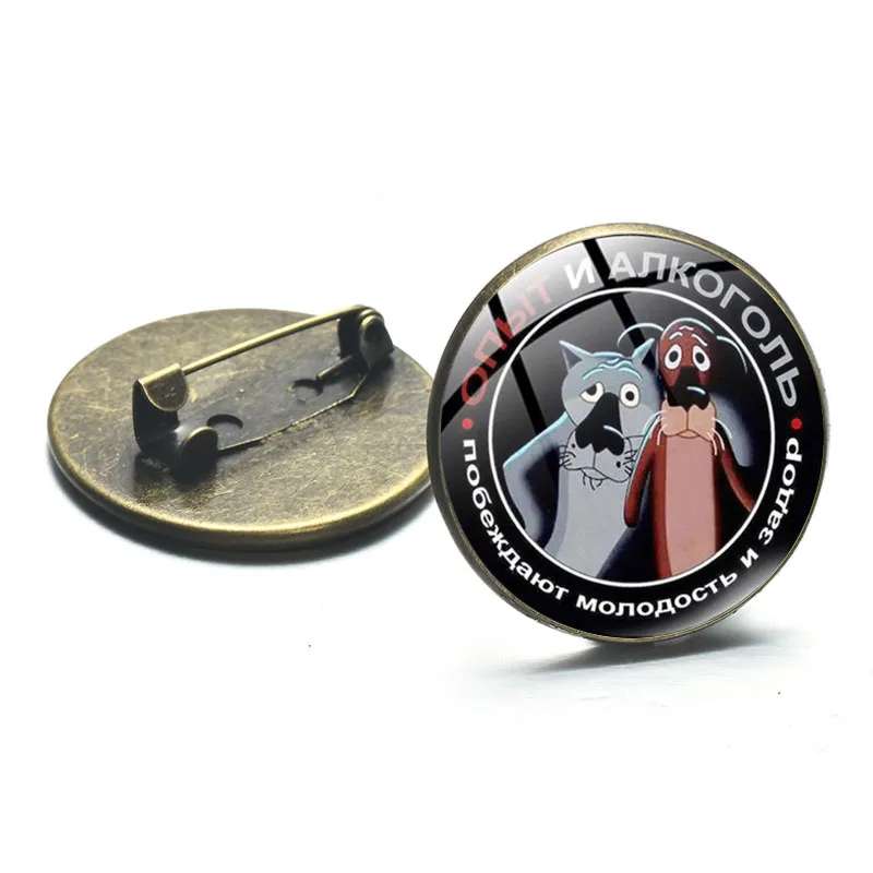 New Russia Wolf Dog Cartoon Brooch CCCP USSR Soviet Badges Clothes Backpack Glass Funny Metal Pins Decoration Men Women Jewelry