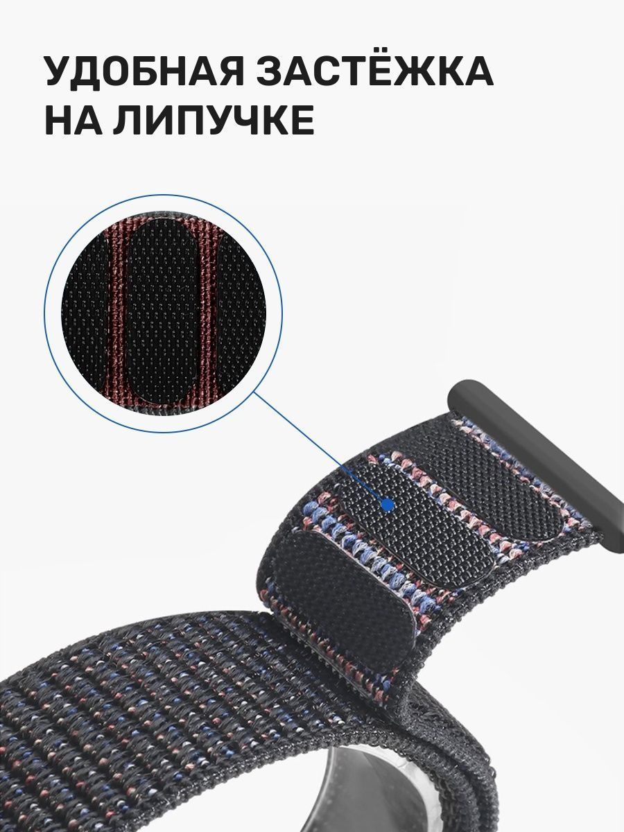 Описание: Нейлоновый ремешок для Apple WatchБраслет обеспечивает комфорт при занятиях физическими упражнениями и не мешает движениям. Благодаря прочной липучке надежно фиксируются на запястье и не соскальзывает. Ремешок выполненен из гипоаллергенной ткани, обеспечивает не только комфортную посадку на запястье, но и приятные тактильные ощущения. Не вызывает раздражения кожи и позволяет ей дышать.