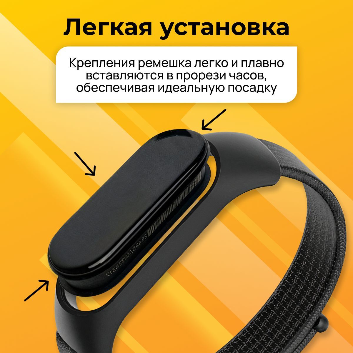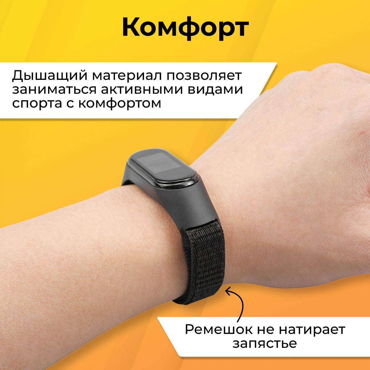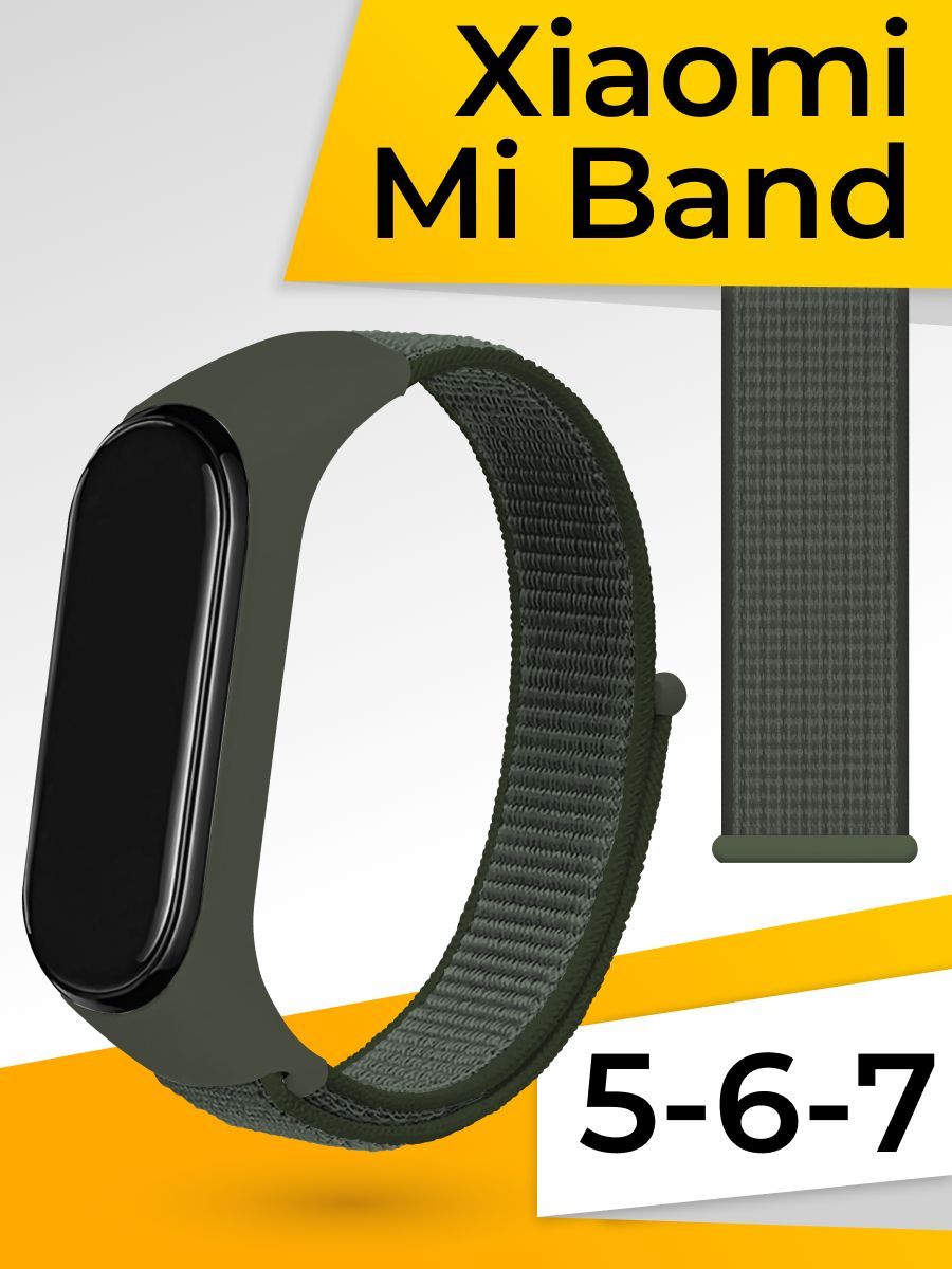 Нейлоновый ремешок для фитнес браслета Xiaomi Mi Band 5-6-7 / Спортивный браслет для умных смарт часов / Тканевый ремень для фитнес трекера на липучке / Хаки