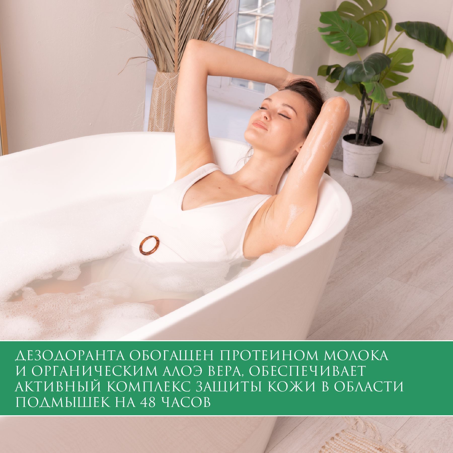 Он станет вашим незаменимым союзником в борьбе с неприятным запахом и потоотделением, обеспечивая надежную защиту в течение 48 часов. Дезодорант основан на смеси органических активных ингредиентов. Молочный протеин, который обладает нежными увлажняющими свойствами, помогает ухаживать за Вашей кожей, предотвращая её обезвоживание и придаёт ей шелковистость и гладкость. Масло авокадо, полное витаминов и питательных веществ, способствует укреплению кожи и придаёт ей ощущение увлажнения и ухода в течение всего дня. А для того чтобы обеспечить естественную свежесть, мы добавили в наш дезодорант экстракт алоэ вера. Этот мощный растительный ингредиент помогает смягчить и успокоить кожу, предотвращая раздражение даже после бритья. Формула дезодоранта без спирта, что делает его мягким и бережным для вашей кожи. Вы можете быть уверены, что он не вызовет раздражений, даже при использовании после бритья. Секрет его эффективности - это способность обеспечивать надежную защиту от потоотделения, не оставляя следов на вашей одежде. Таким образом, вы можете наслаждаться свежестью и комфортом на протяжении всего дня. Нанесение дезодоранта - настоящее удовольствие. Его легкая текстура позволяет мягко скользить по вашей коже, моментально принося чувство свежести и комфорта без липкости. Аромат дезодоранта окутывает вас приятной зеленой и вьющейся нотой, создавая атмосферу летней прогулки по итальянским садам. Каждый раз, когда вы используете этот дезодорант, вы будете наслаждаться свежим и неповторимым ароматом, который подчеркнет вашу натуральную красоту и уверенность. Удобный формат роликового дезодоранта делает его идеальным спутником в путешествиях. Компактные размеры позволяют вам легко взять его с собой в ручную кладь, чтобы поддерживать свежесть и комфорт во время путешествий. Этот набор предлагает вам уникальную возможность приобрести два дезодоранта, что делает его не только выгодной покупкой, но и вариантом подарка для ваших близких. Подойдет как женщинам, так и мужчинам. Продукт был протестирован дерматологами, что подтверждает его безопасность и эффективность для регулярного использования.