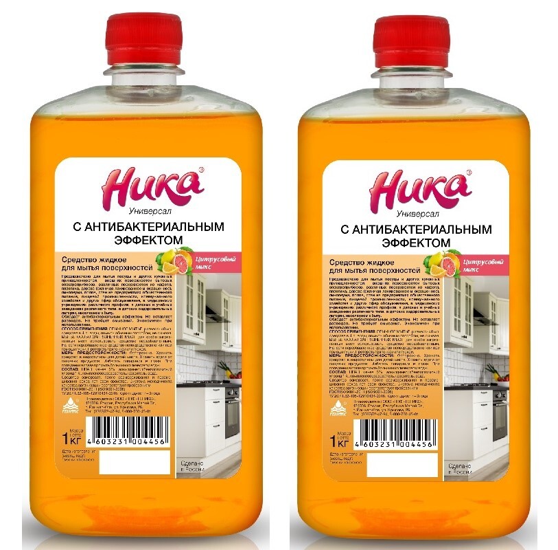 НИКА Набор 2 шт Средство жидкое для мытья поверхностей "Ника универсальное с антибактериальным эффектом", цитрусовый микс, 1 кг