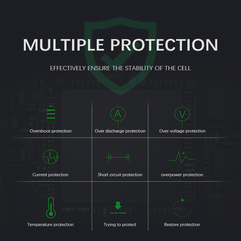 9. Двойная конструкция защиты IC обеспечивает безопасность и продлевает срок службы батареи.