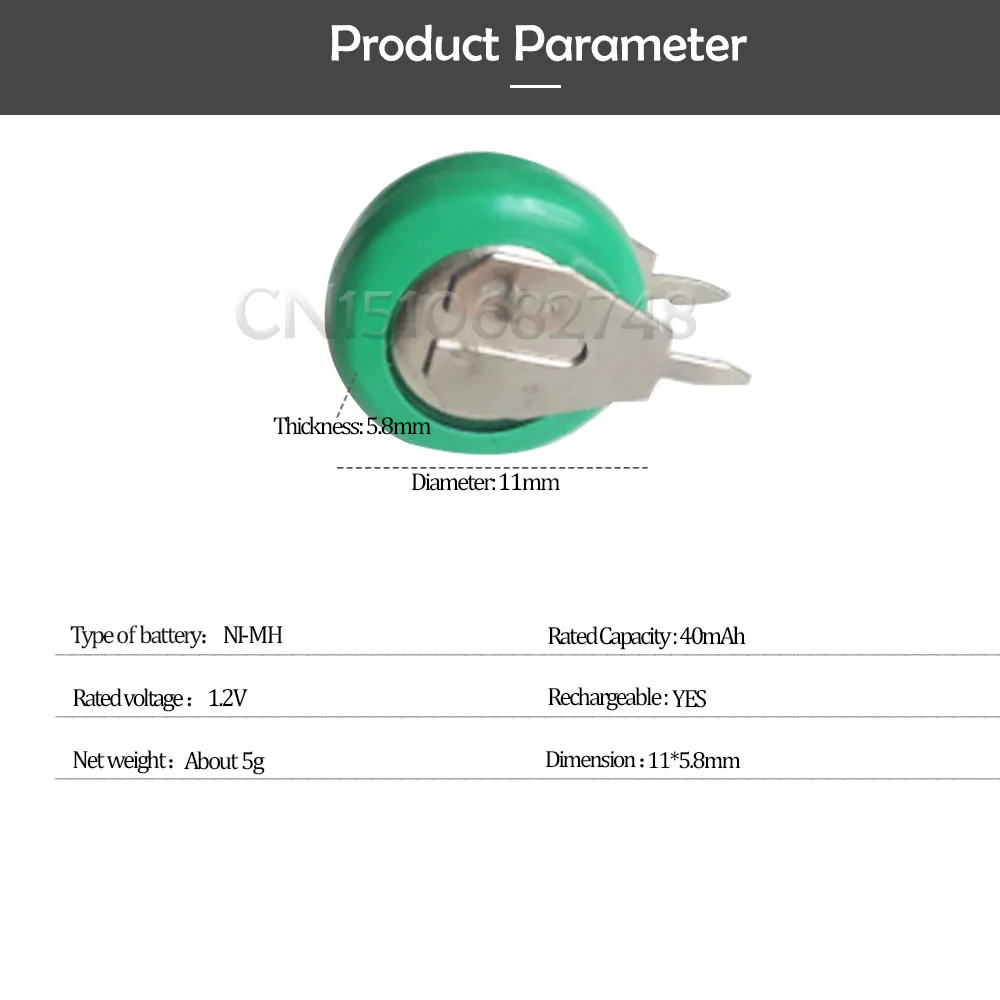 1-8 шт. 1,2 В 40 мАч Ni-MH NIMH аккумуляторная батарея с припоем для часов Игрушка таймер Солнечная энергия слуховой аппарат Кнопка монетоприемник