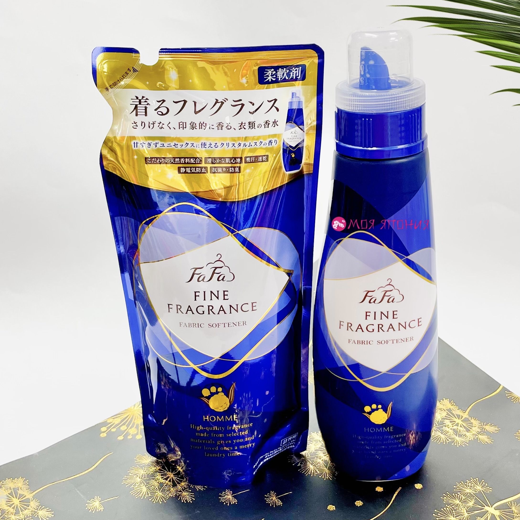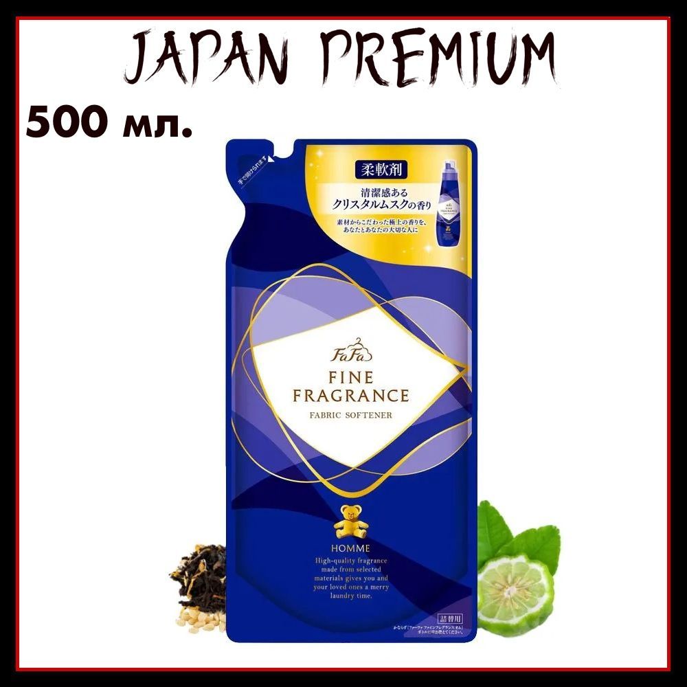 Nissan FaFa "Homme" Японский антистатический кондиционер для белья с красивым мускатным ароматом чая с бергамотом Fine Fragrance, 500 мл. (м/у)