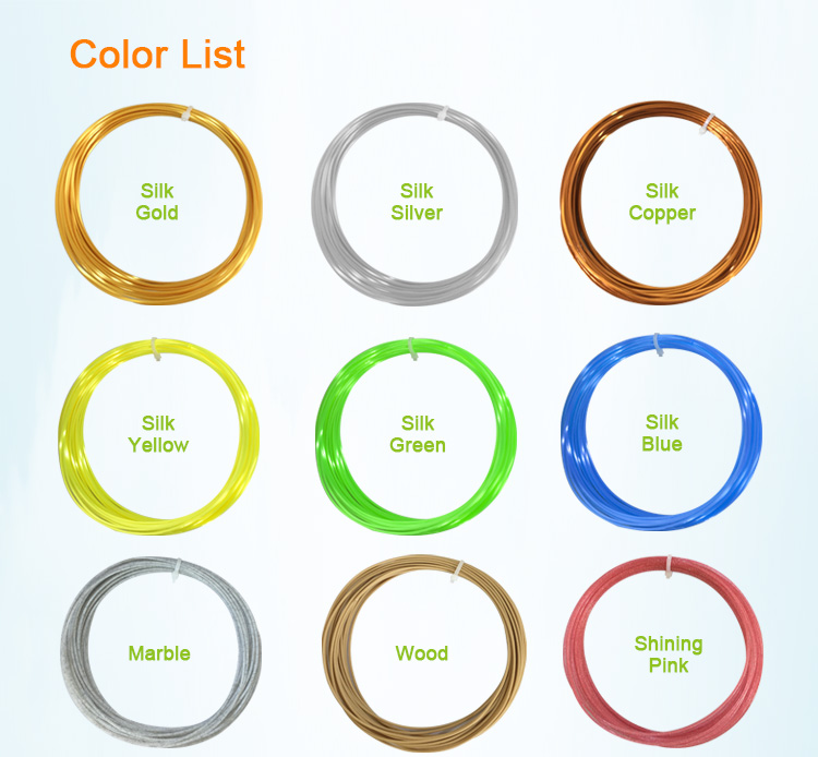 Нить 3D Ручка PLA 1,75 мм 5 метров заправка шелковая мраморная блестящая древесина Золото Серебро Медь Желтый Синий Розовый принтер пластиковый материал