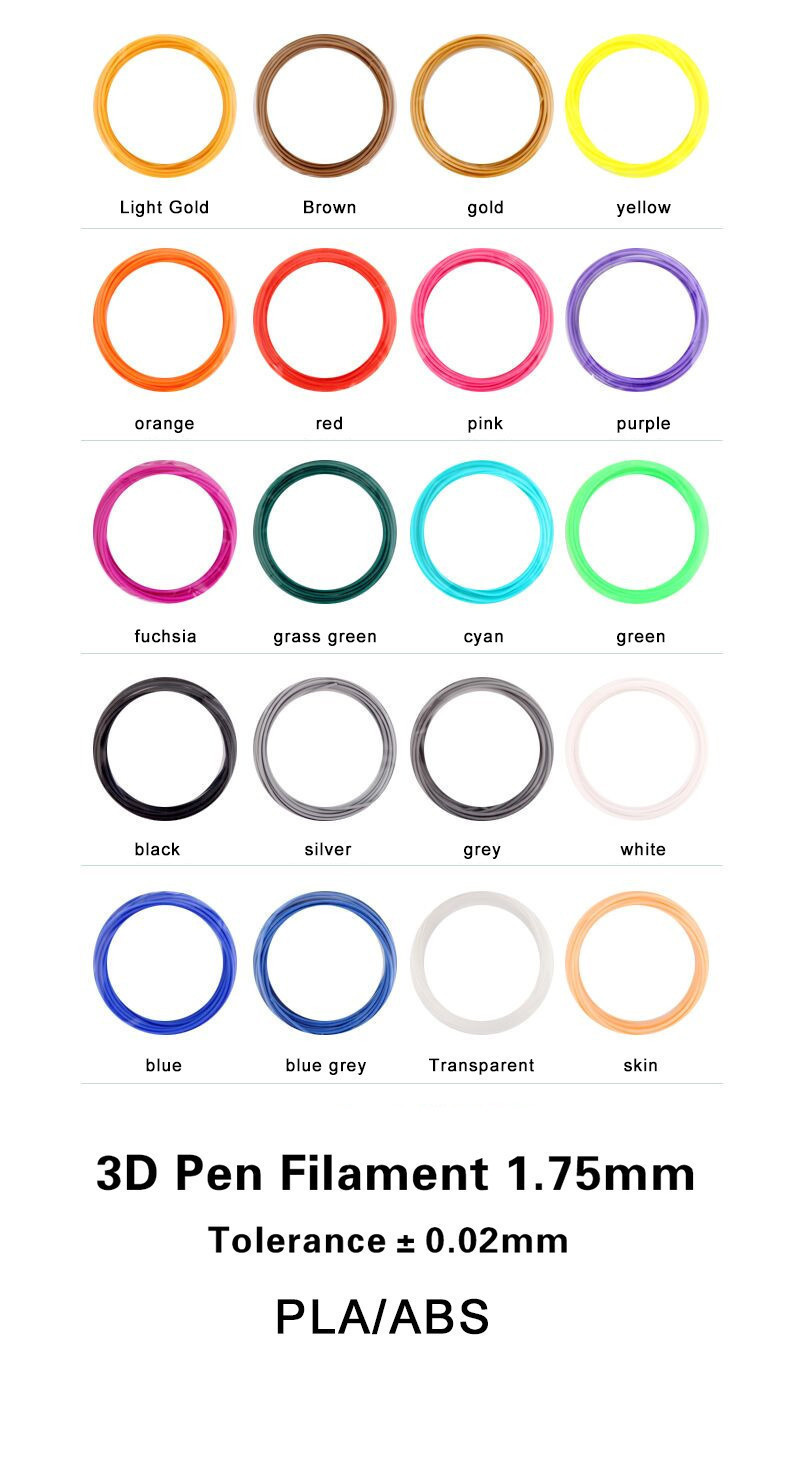 Цвет: ABS/PLA (20 цветов, цвет s(16 нормальных цветов s + 4 цвета, светящийся цвет s)