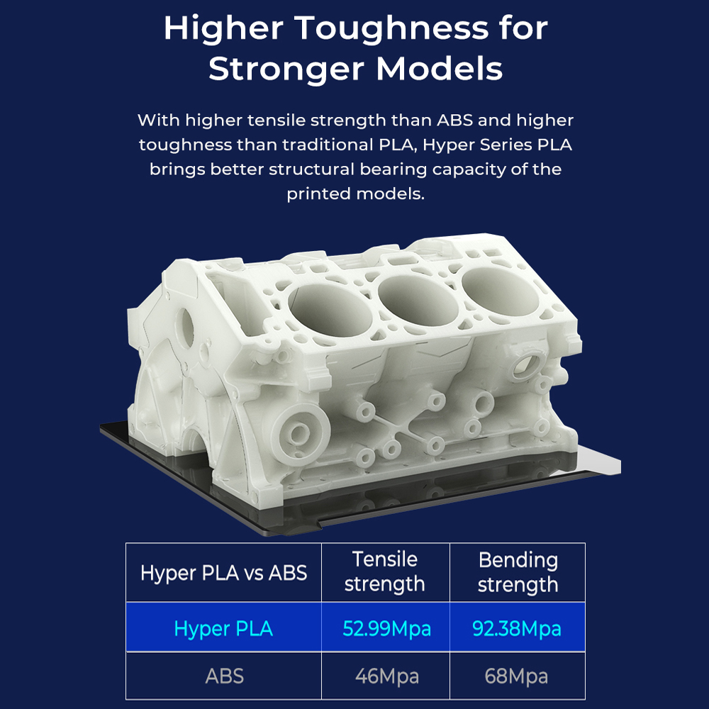 Обладая более высокой прочностью на разрыв, чем ABS, и более высокой вязкостью, чем традиционный PLA, Hyper Series PLA обеспечивает лучшую несущую способность печатных моделей.Равномерный диаметр провода, стабилизированное штранг-прессование