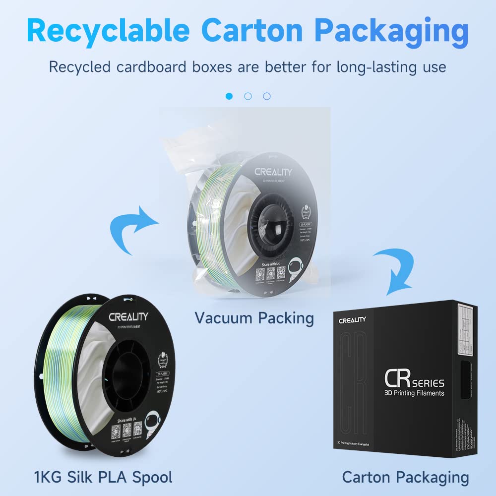 Precise filament diameter control and automatic winding arrangement are combined to ensure smoother printing without tangling.Eco-friendly Packaging, Reducing Carbon Emissions
