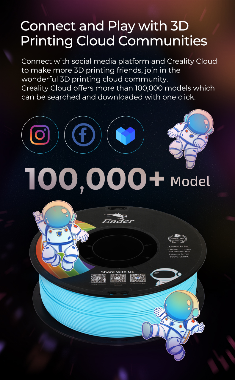 Globally selected raw materials and strict qualitycontrol deliver excellent printing performance and printing results.Share Model Library on Creality Cloud