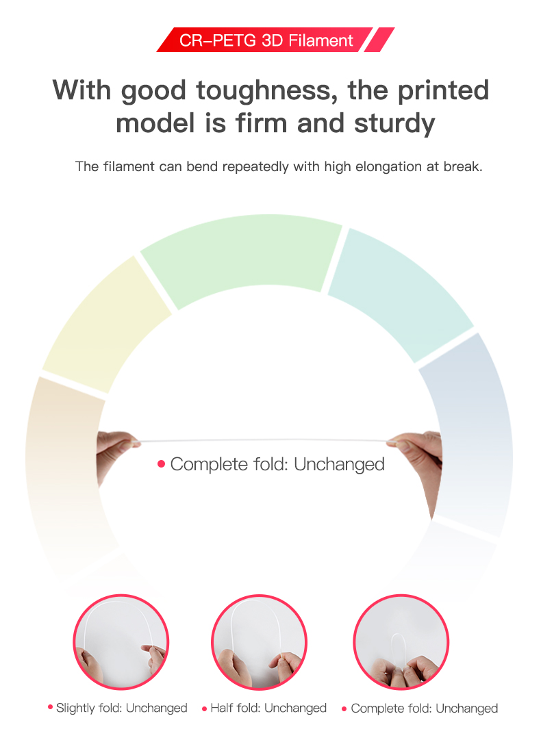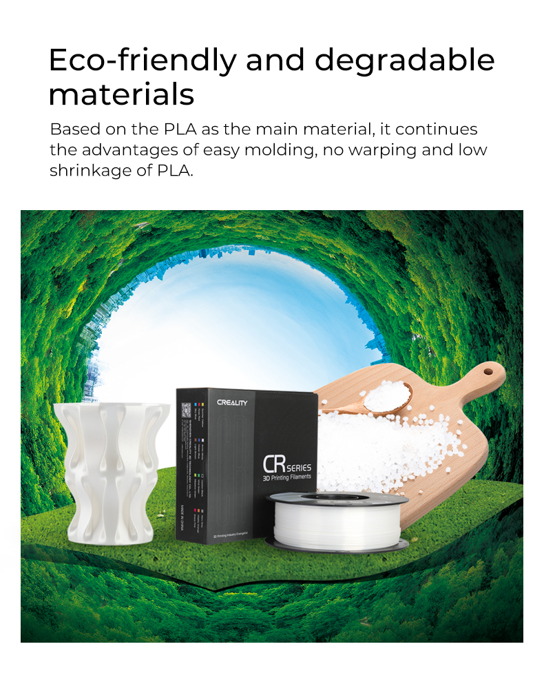 Professionally designed formula to improve the gloss and enhance the toughness of the filament. Repeated bending with less susceptible to breakage, no worries about printing interruption.Eco-friendly and degradable materials