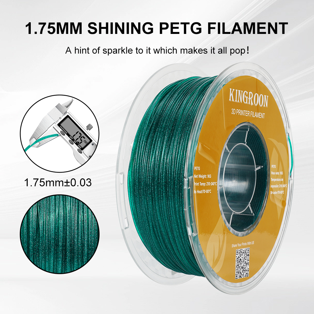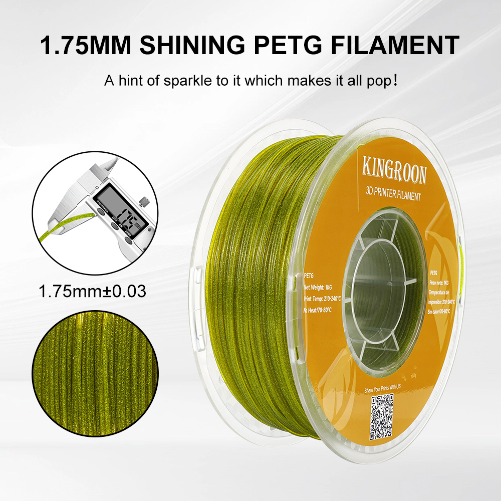 Нить KINGROON для 3D-принтера, блестящая, PLA, PETG, 1,75 мм, 1 кг, катушка, материал для 3d-печати, новейший Пластик PLA/PETG