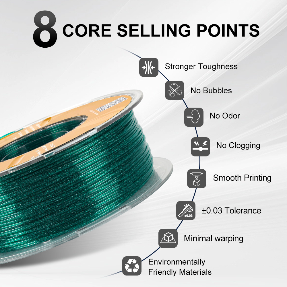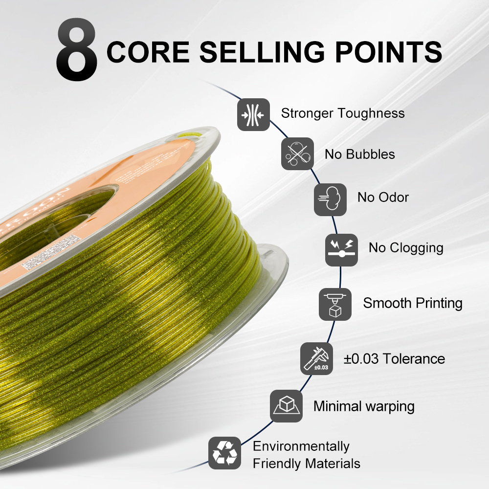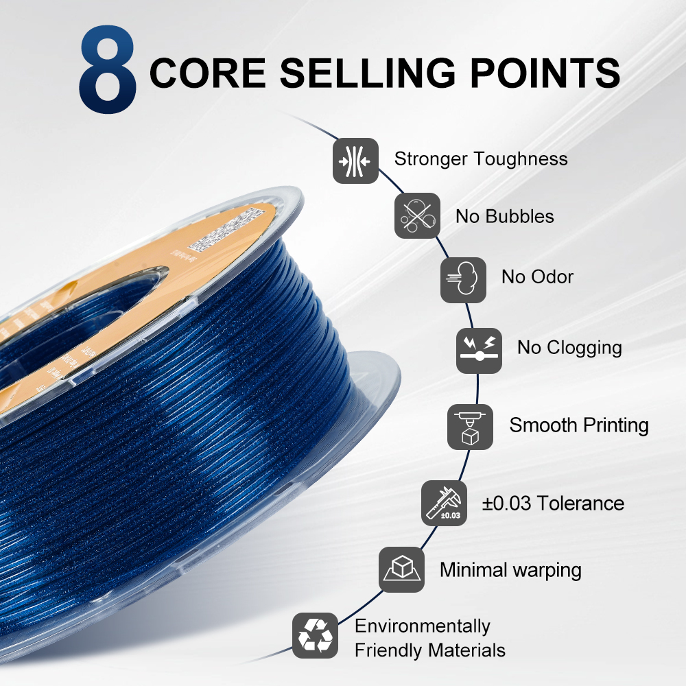 Эта Совершенно новая нить для 3D-печати добавляет блестящий материал к стандартному PLA/PETG, что может заставить напечатанные модели иметь эффект блеска и очень подходит для покупателей, которым это нужно;