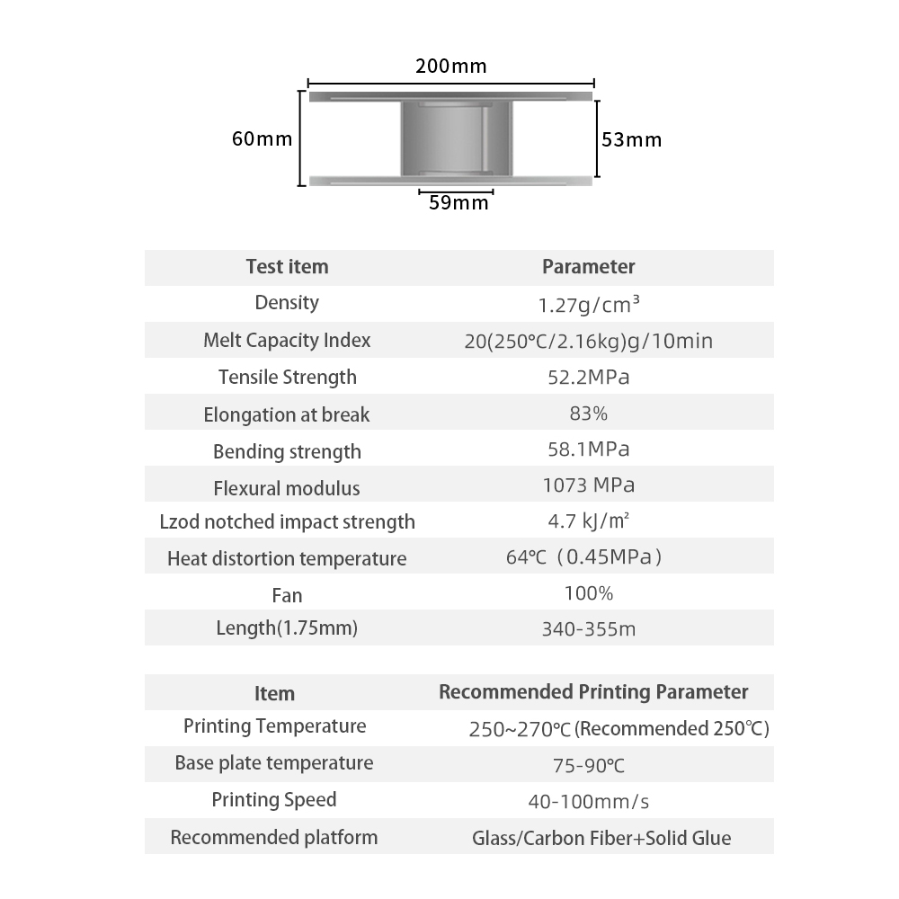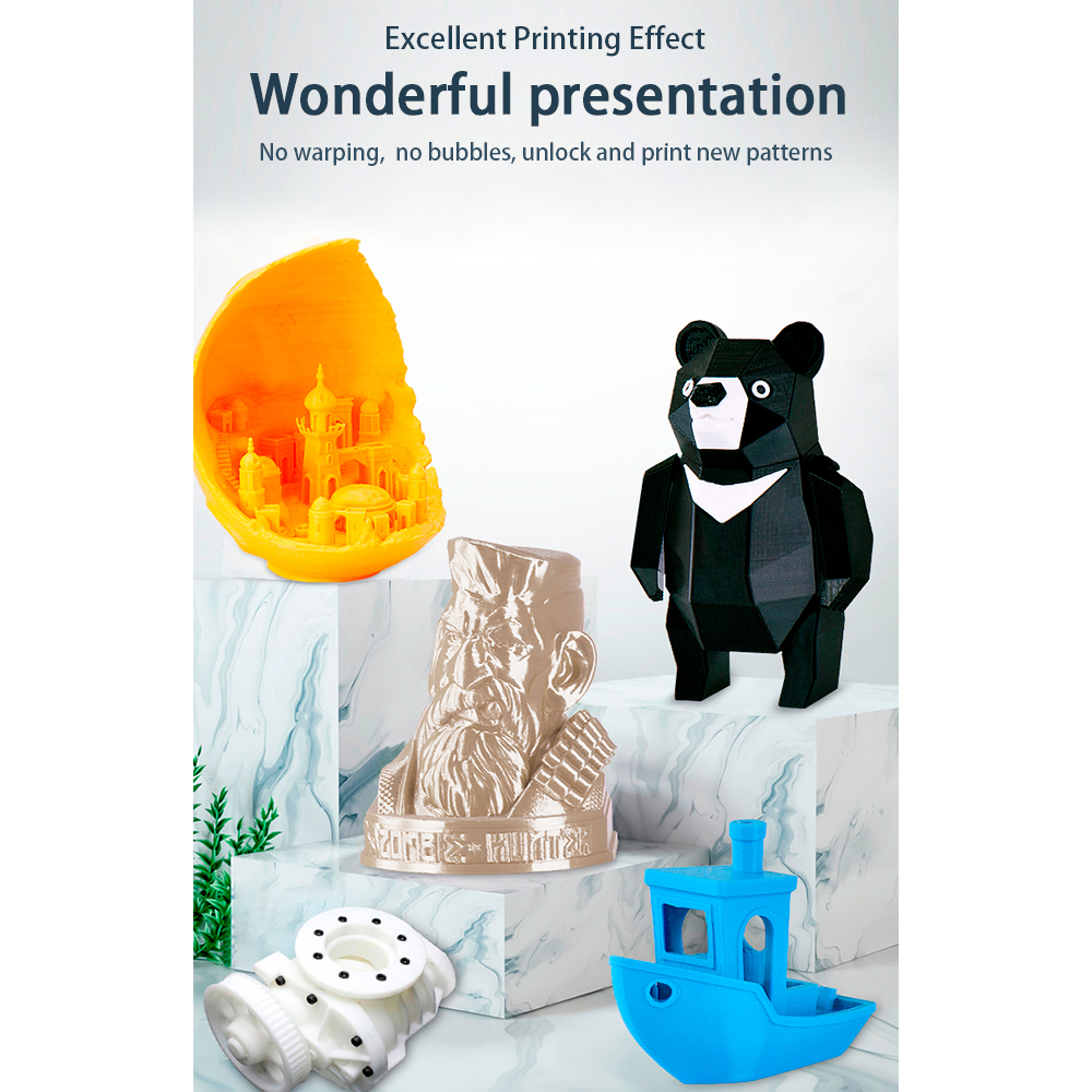 PLA, или Полимолочная кислота, является широко используемым термопластичным материалом, который не требует использования нагретого печатного стола. Из-за более низких температур плавления и отсутствия деформации нити PLA сохраняют свою цветовую яркость и являются обычным выбором для дисплеев или небольших домашних отпечатков. 3D-печатный объект будет иметь глянцевое покрытие, которое нам нравится: меньше деформации, простота использования, не требуется Подогреваемая кровать.
