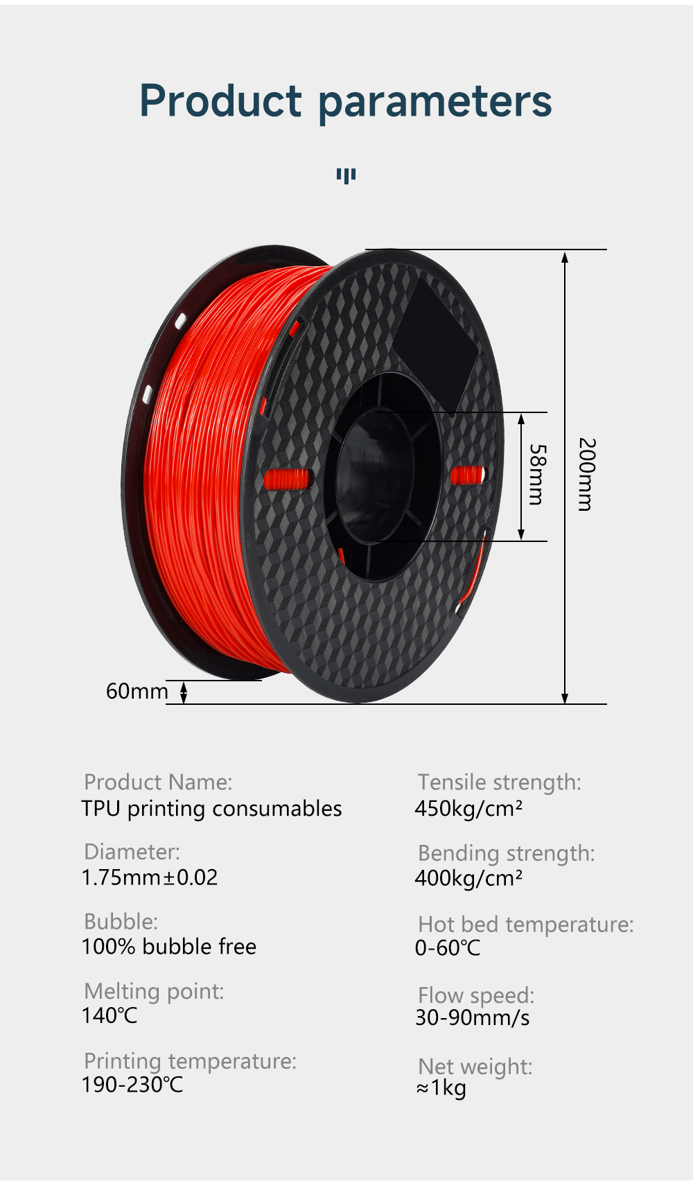 2. Каждая катушка проверяется на качество резьбы, склейка, отклонения в диаметре (стандарт 1,75 мм) и цвете не допускаются. Для производства нашей нити ТПУ используется только высококачественное сырье.