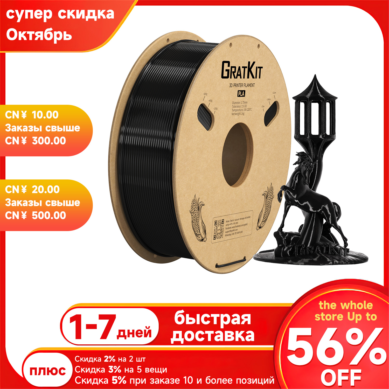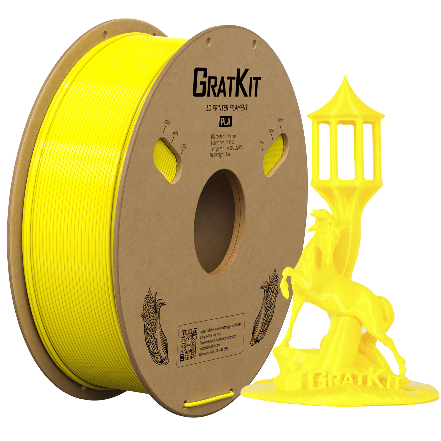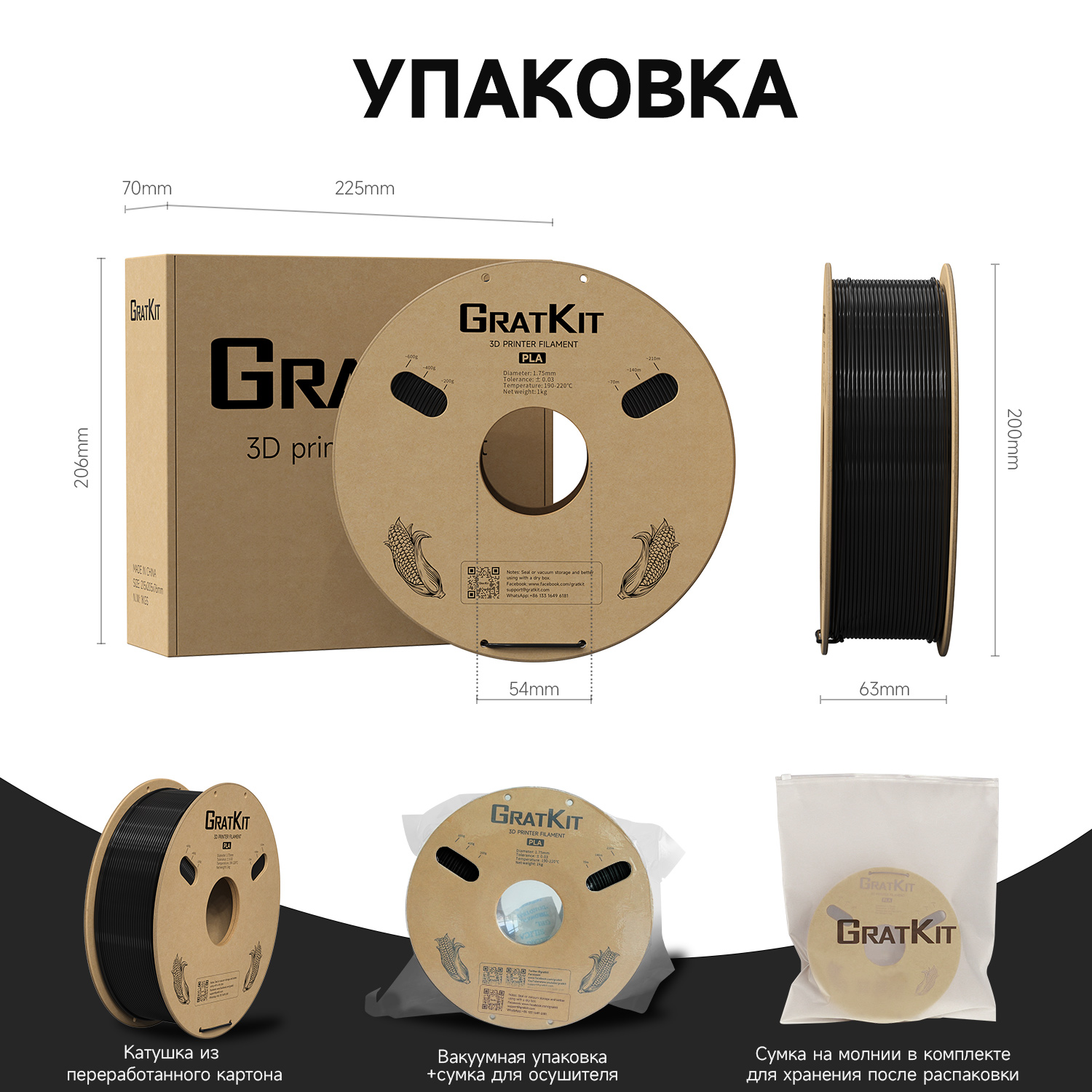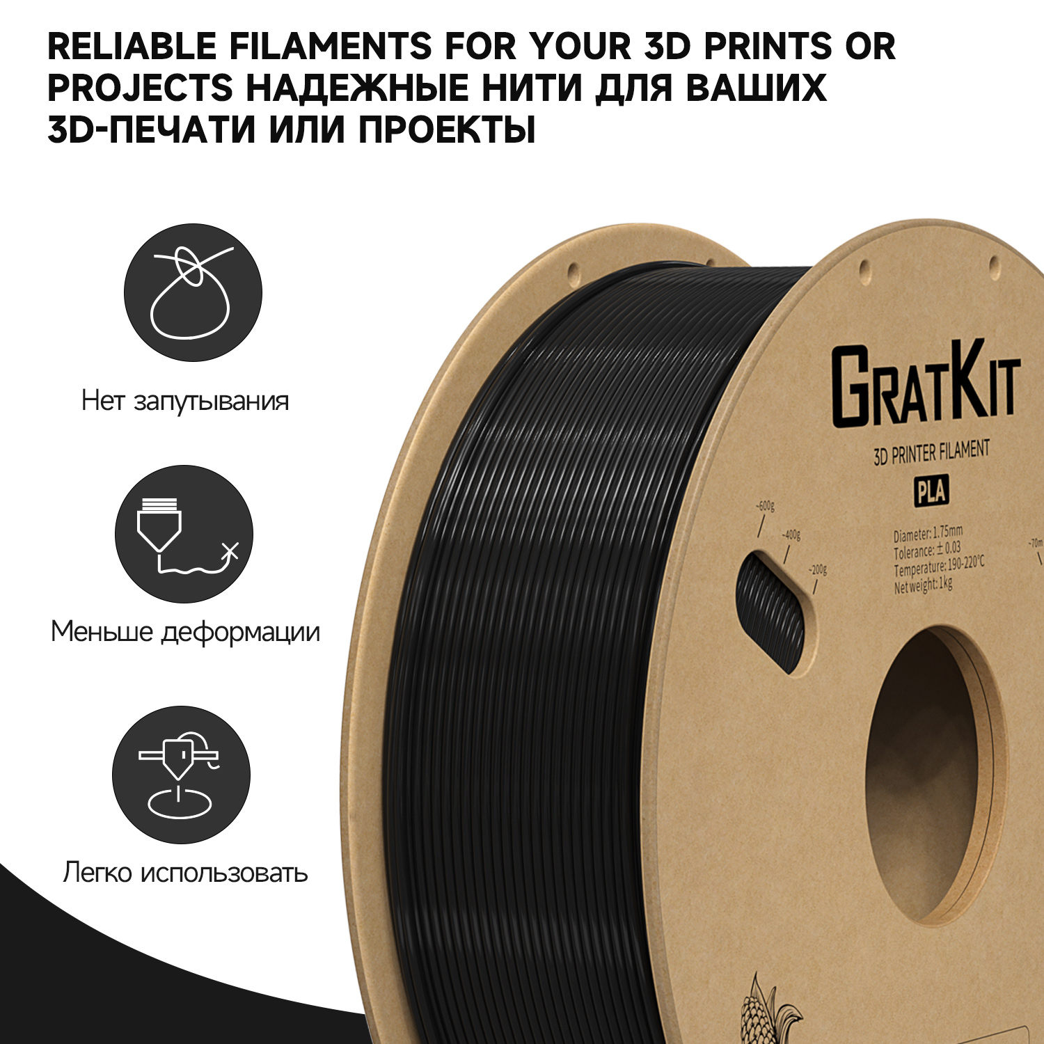 Gratkit Стандартная PLA-нить 1 кг 1,75 мм Высококачественная точность размеров +/-0,03 мм для 3D-принтера Быстрая доставка