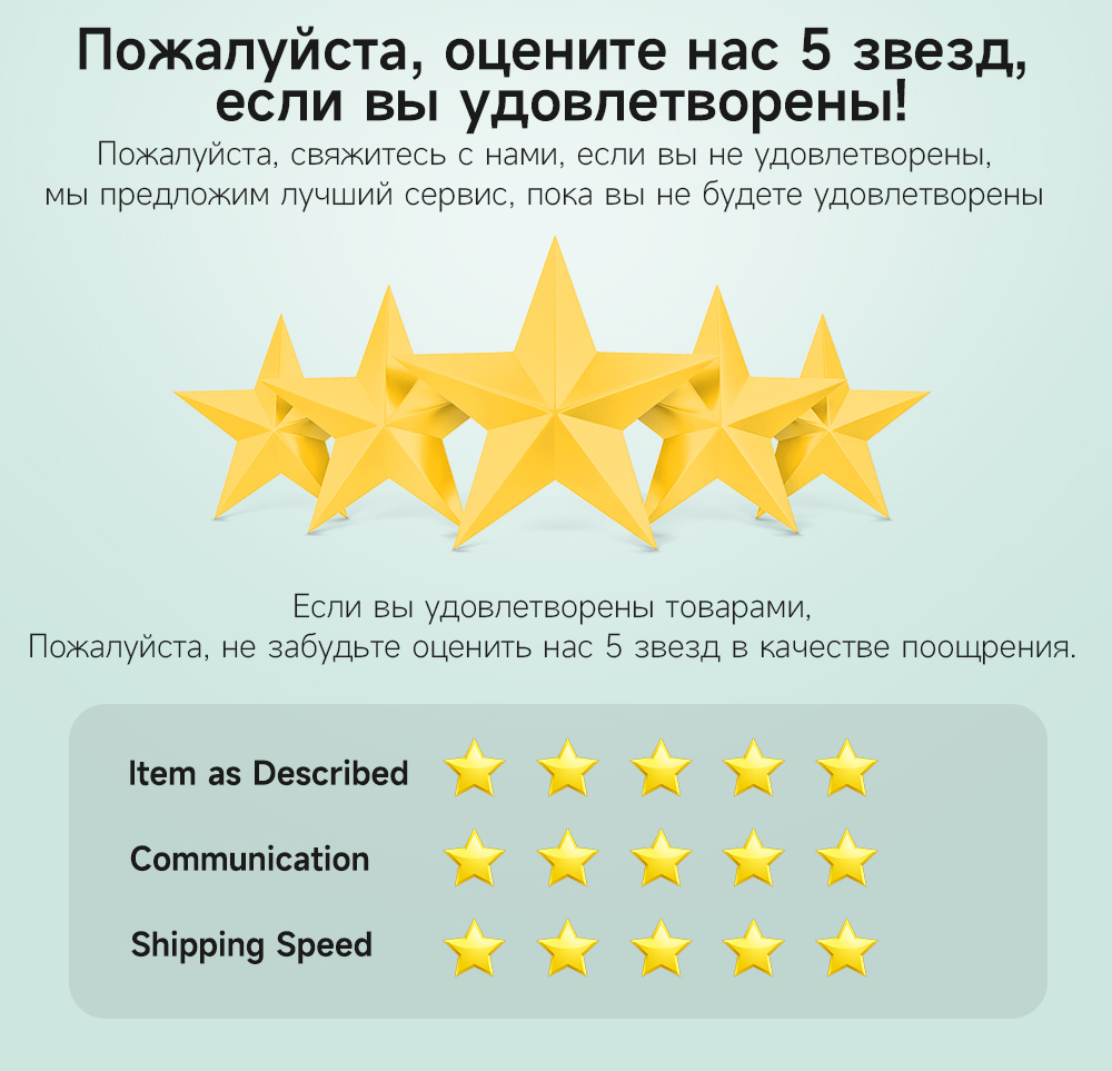 * Если возникнут какие-либо вопросы, вы можете связаться с нашей службой поддержки клиентов в течение 24 часов до отрицательного отзыва. Мы сделаем все возможное, чтобы помочь вам.
