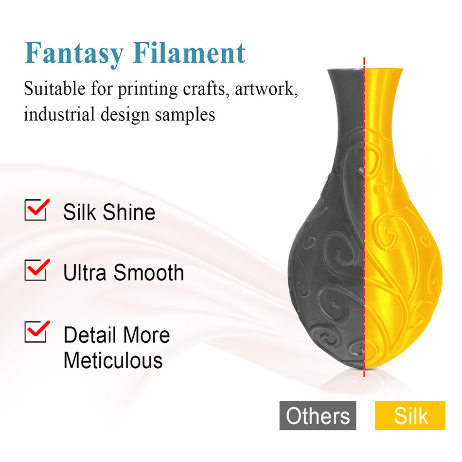 Шелковая нить-это Разлагаемый, нетоксичный материал, близкий к шелковому эффекту, прочность более 50 раз PLA. Аккуратная намотка нити печати плавно, без путаницы. 100% без пузырьковой нити для 3D-печати.