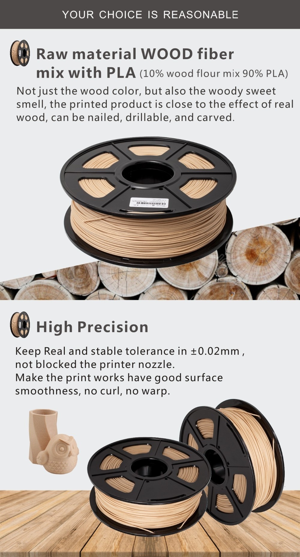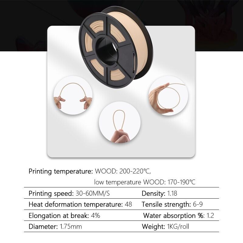 ДЕРЕВЯННАЯ нить принтера 3Д фиалмент 1,75 мм 1кг деревянное с волокном 18% деревянным & ПЛА 100% 82% отсутствие пузыря